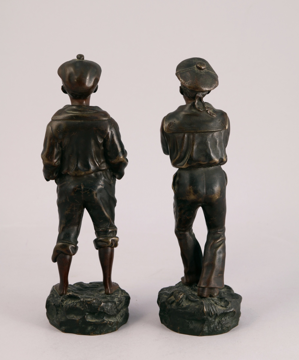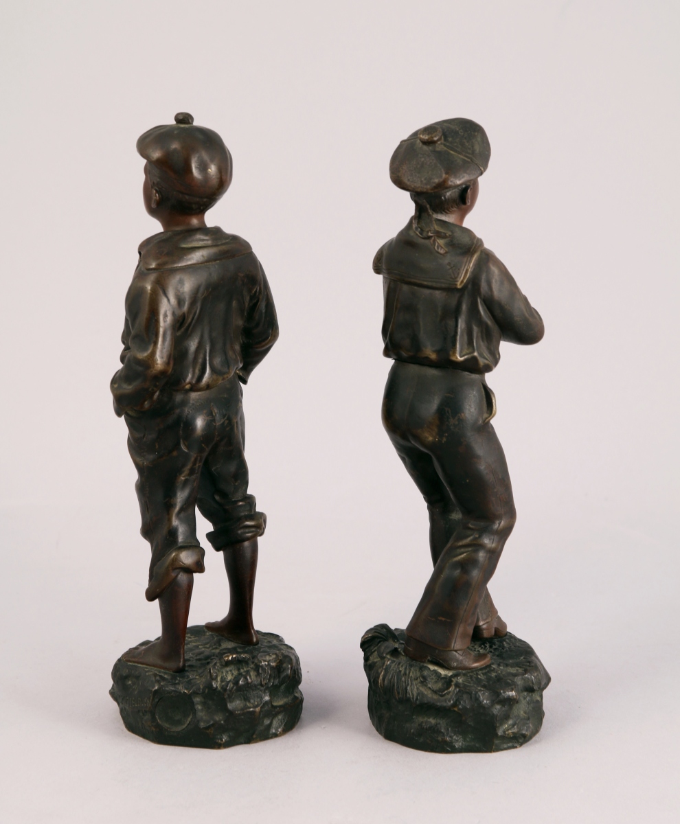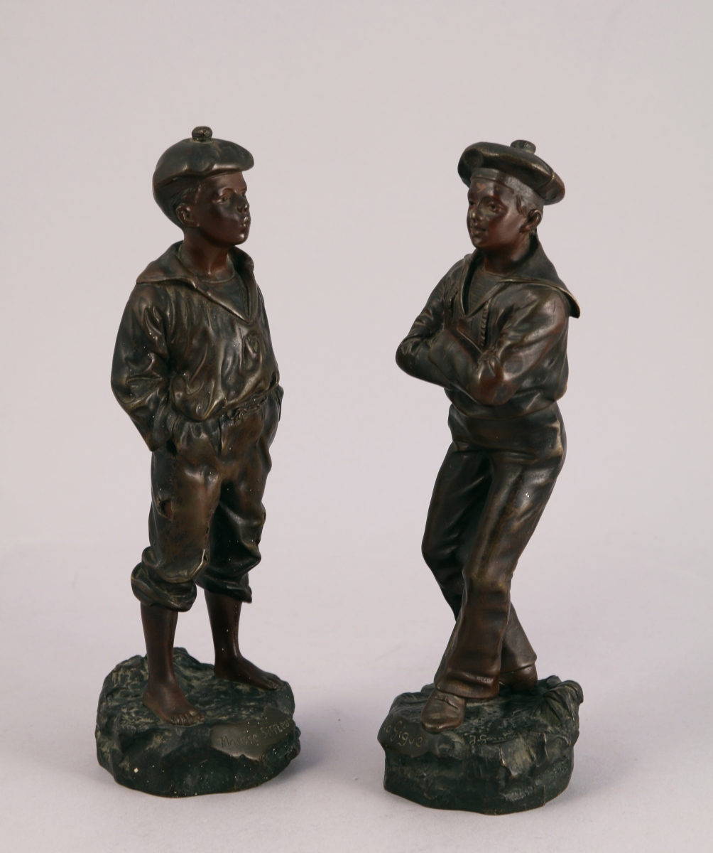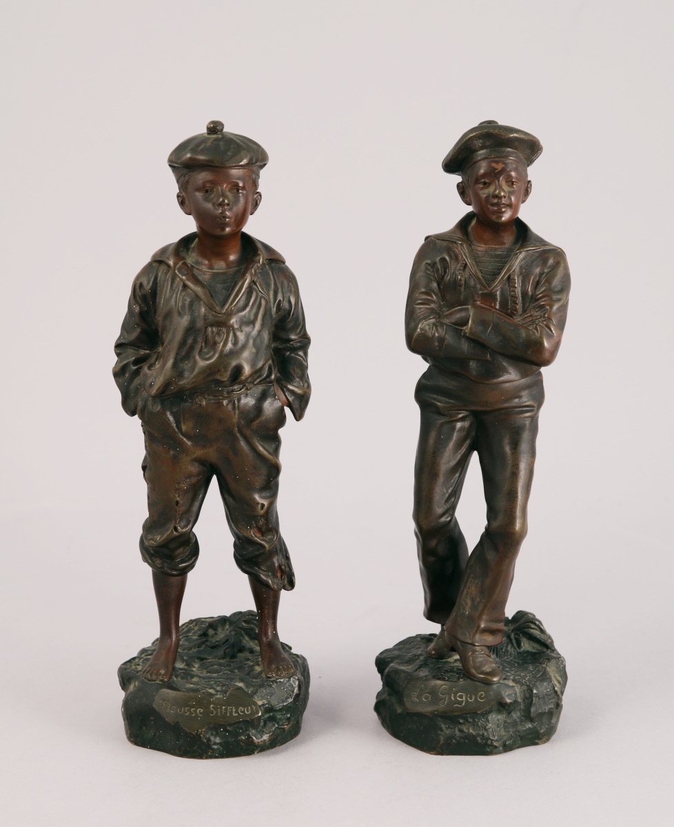 Deux bronzes patinés, signés et titrés. Cachet de fondeur pour le mousse siffleur.