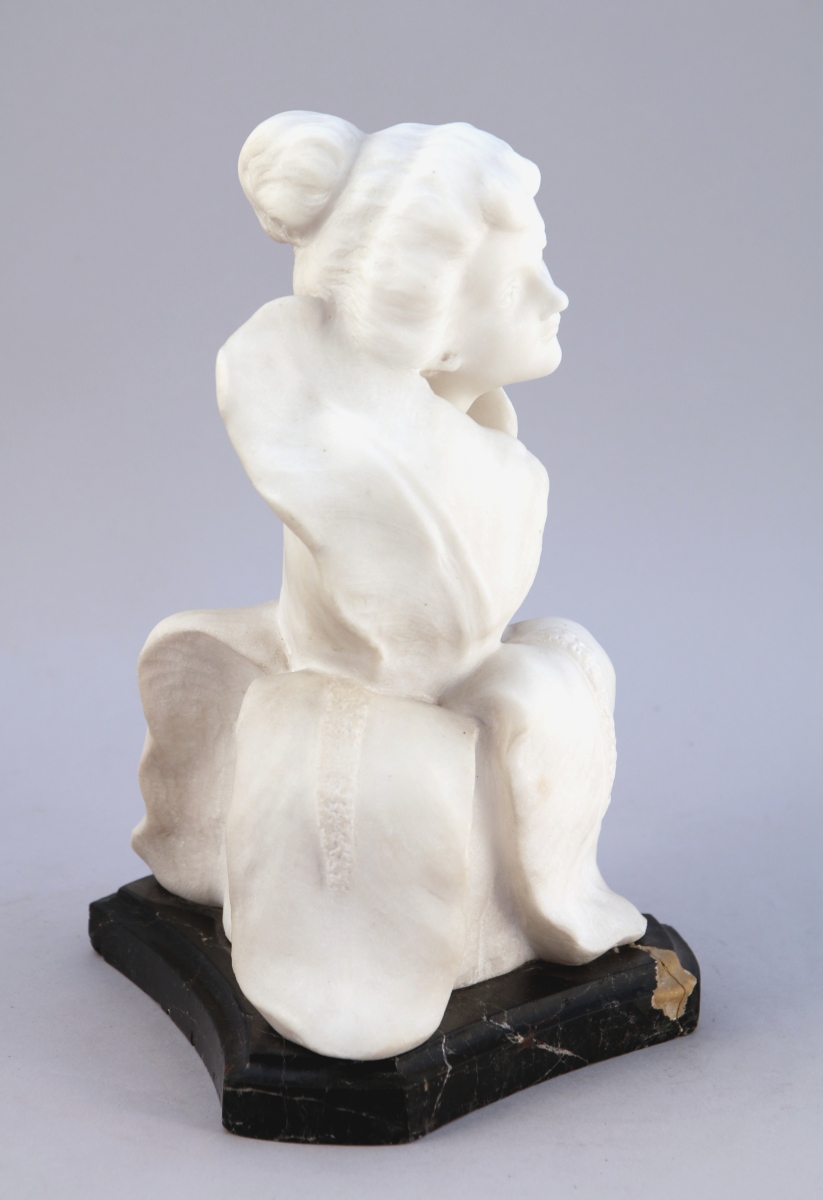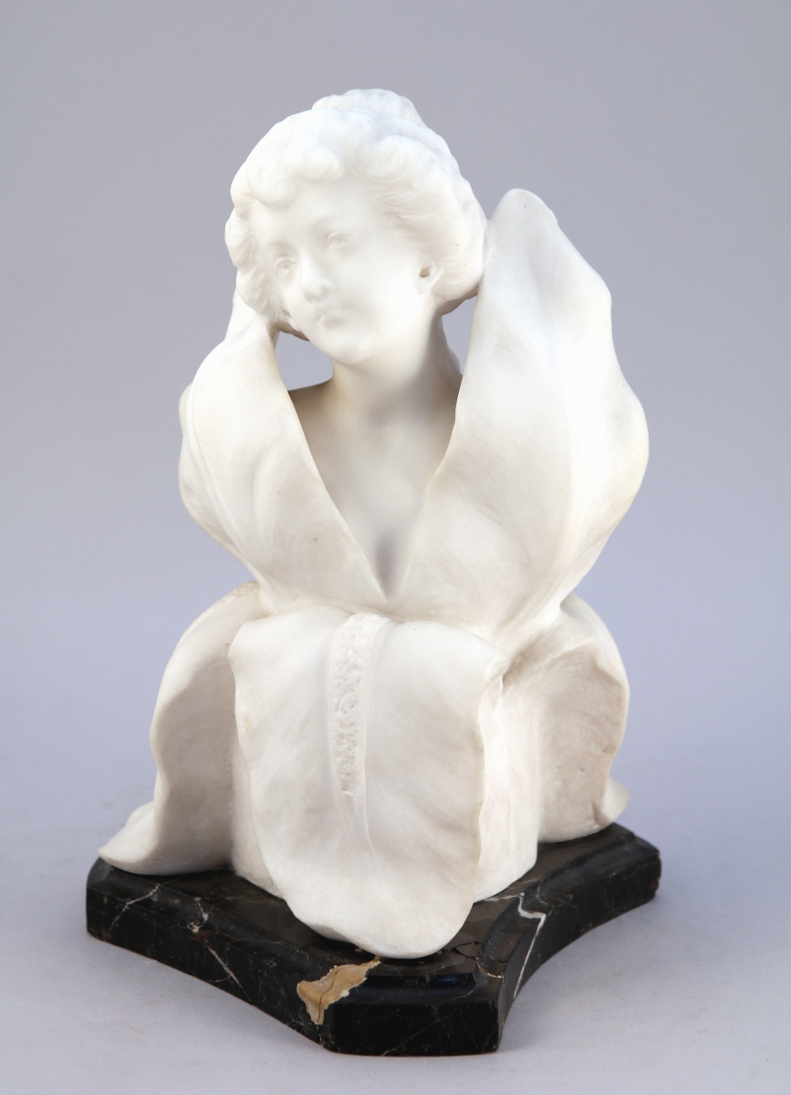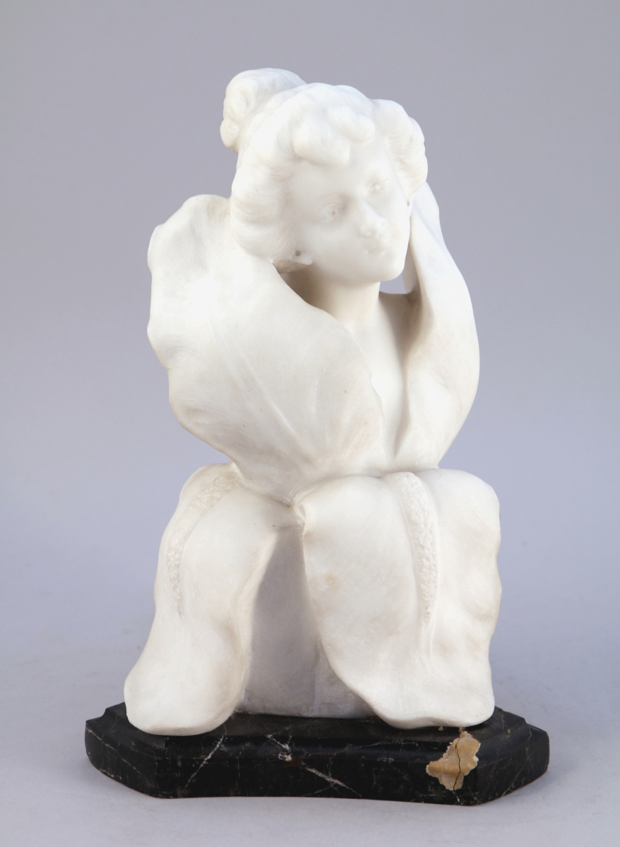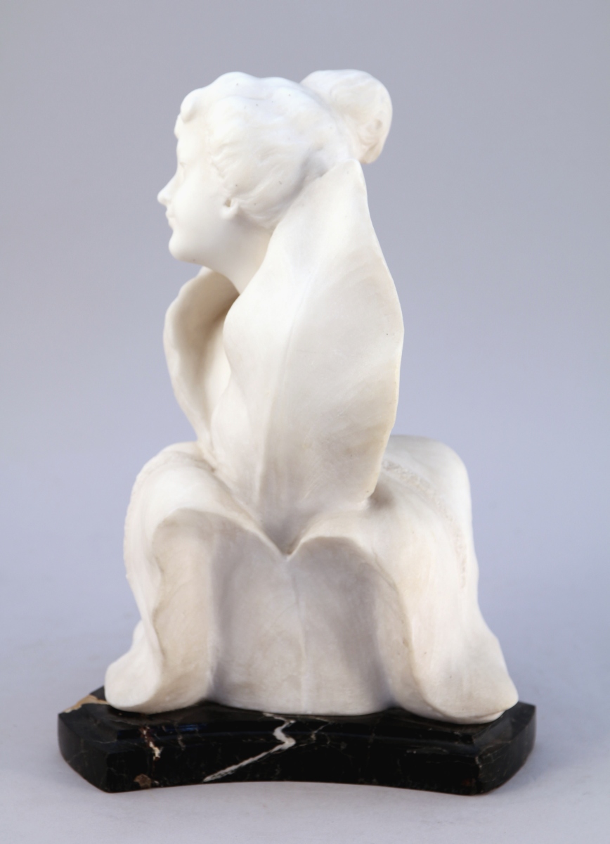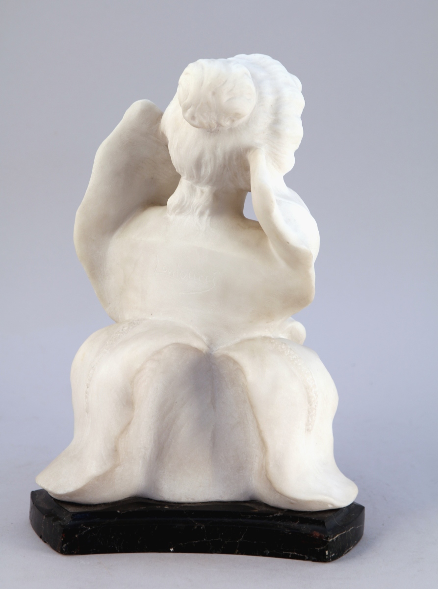 Marbre sculpté sur un socle en marbre brèche. Signature incisée "LANDUCCI" au dos.