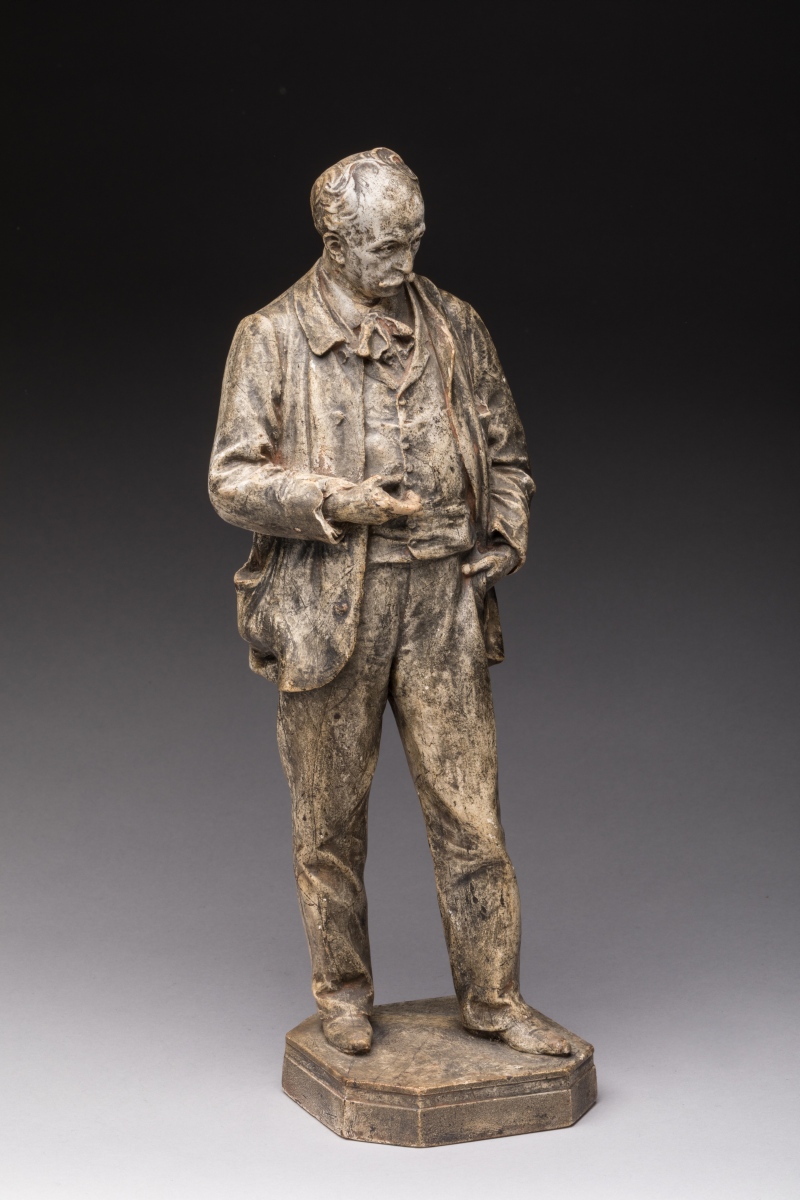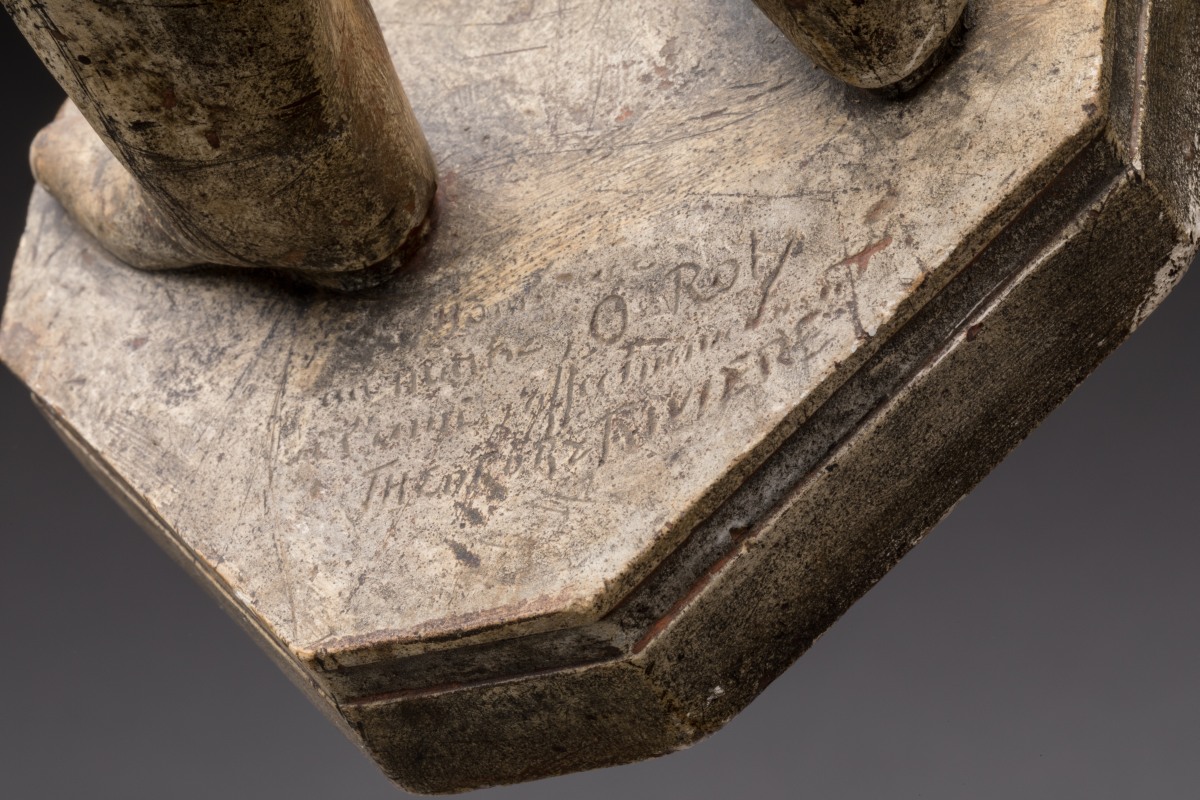 Plâtre patiné. Signé en creux sur la terrasse et portant la dédicace "... O.ROTY/ l'ami affectueusement/ Thédore Rivière".