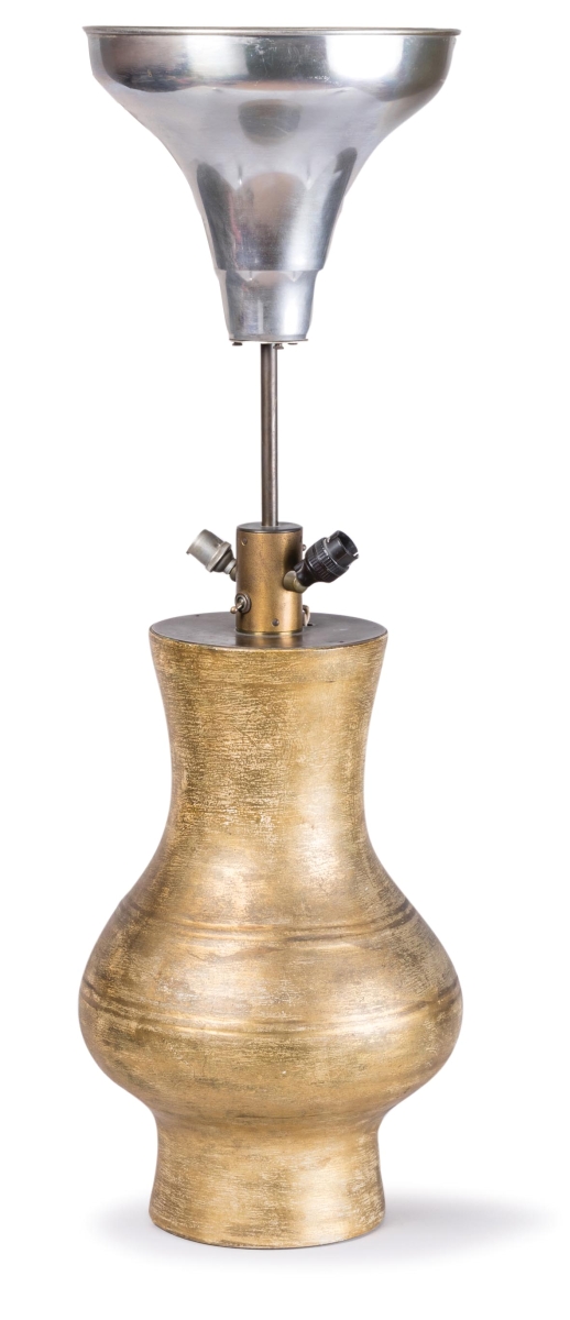 Bien quaucun modèle équivalent de vase ne soit référencé dans les archives du comité Jean-Michel Frank (Paris, 1895 - New-York, 1941), il est troublant que lesprit de cette lampe se rapproche de vases comparables, parfois chinois ou précolombien comme cest le cas dans lappartement de Claire Artaud, utilisés par le décorateur et reproduit dans différents ouvrages, notamment: Léopold Diégo Sanchez, "Jean-Michel Frank ", éd. du Regard, 1997, p. 239 et "Jean-Michel Frank, Adolche Chanaux, Intérieurs" éd. Jacques De Vos, 1990 p. 104.
