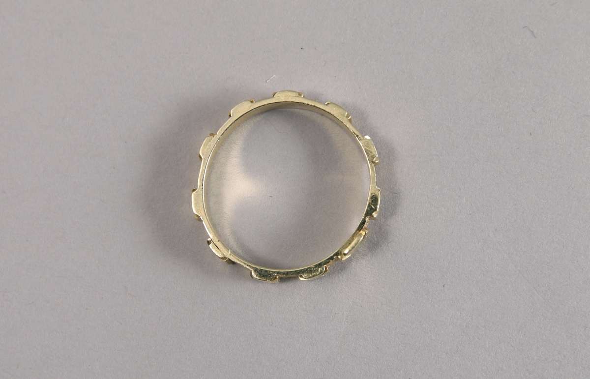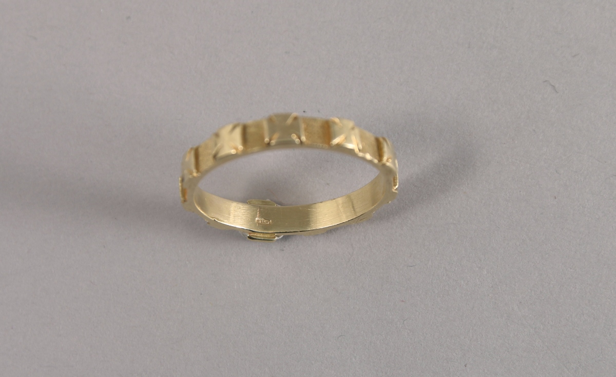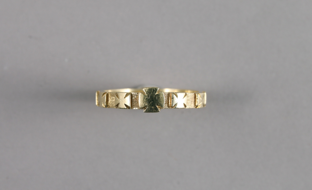 DIZAINIER en or jaune 18K. Fond amati appliqué de 11 croix pattées dont une plus importante.
