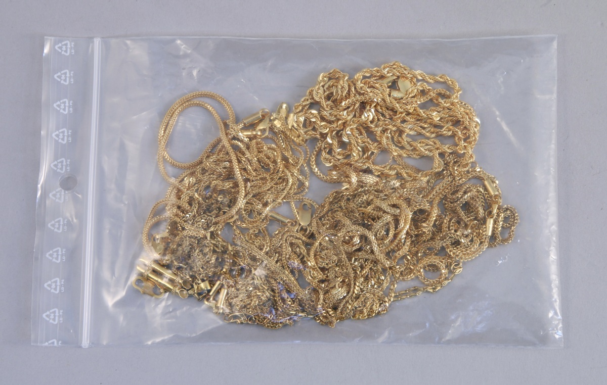 OR jaune À LA CASSE, 22K, dont chaîne et pendentif.