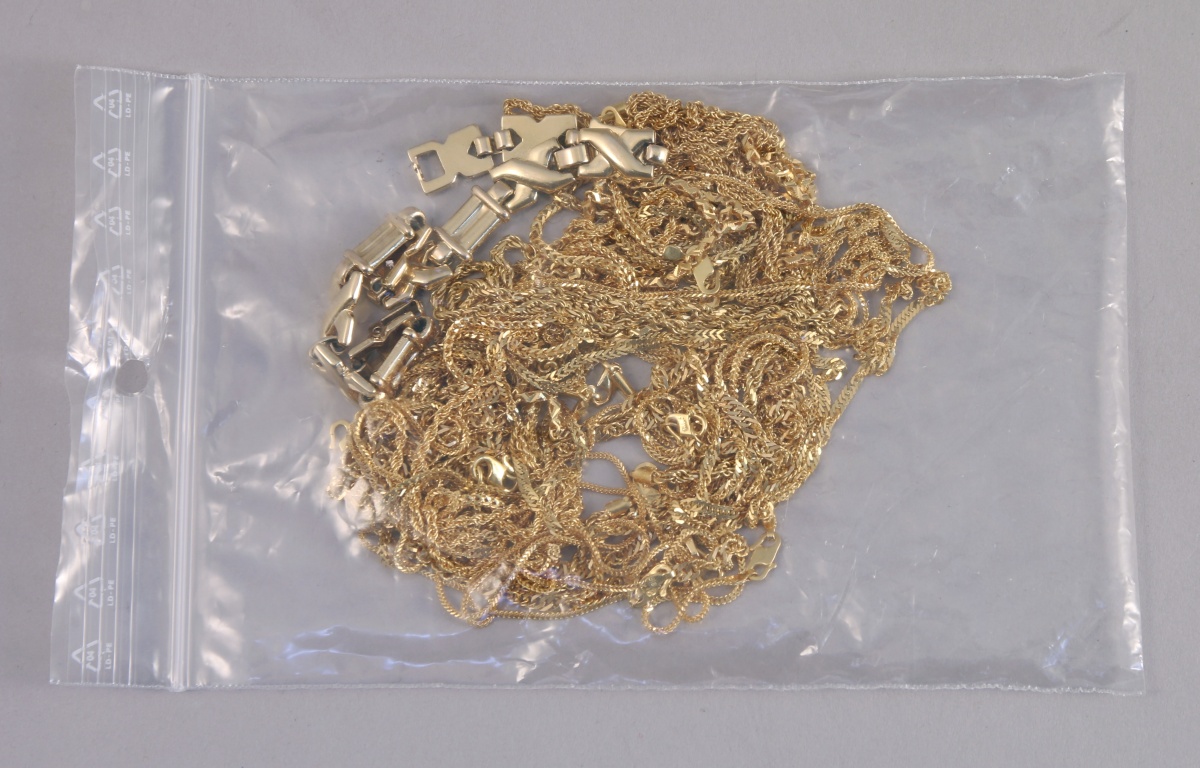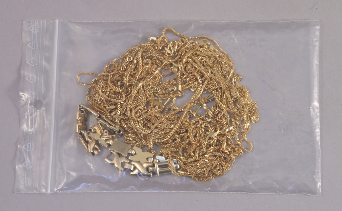 OR jaune À LA CASSE, 22K, chaînes et bracelet.
