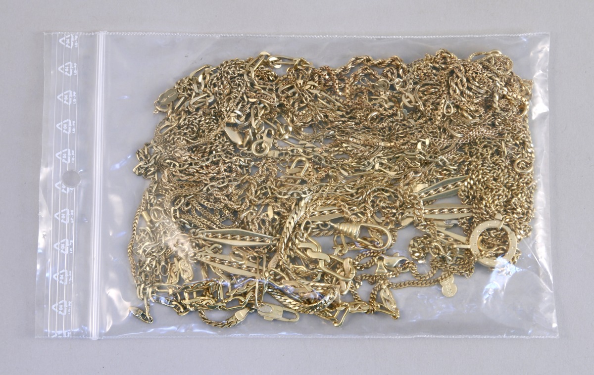 OR jaune À LA CASSE, 18K, chaînes.