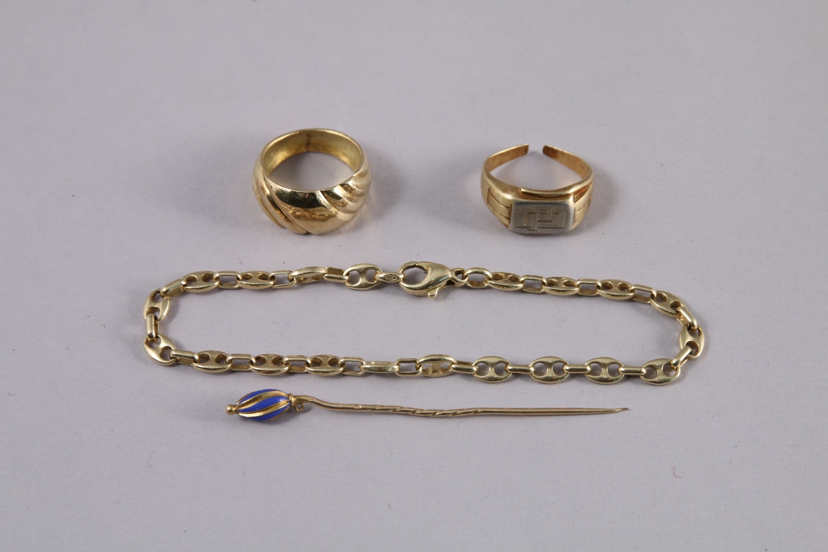 - DEUX BAGUES en or jaune. Poids: 15 g.