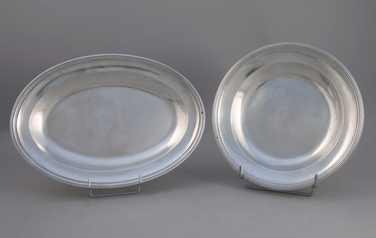 DEUX PLATS DE SERVICE en argent, la bordure ornée de filets: