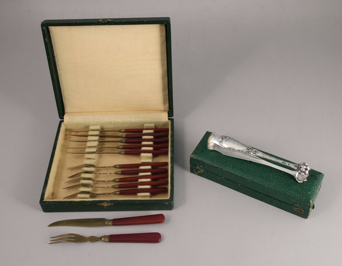 JOINT: suite de SIX FOURCHETTES et SIX COUTEAUX À ENTREMETS en laiton.
