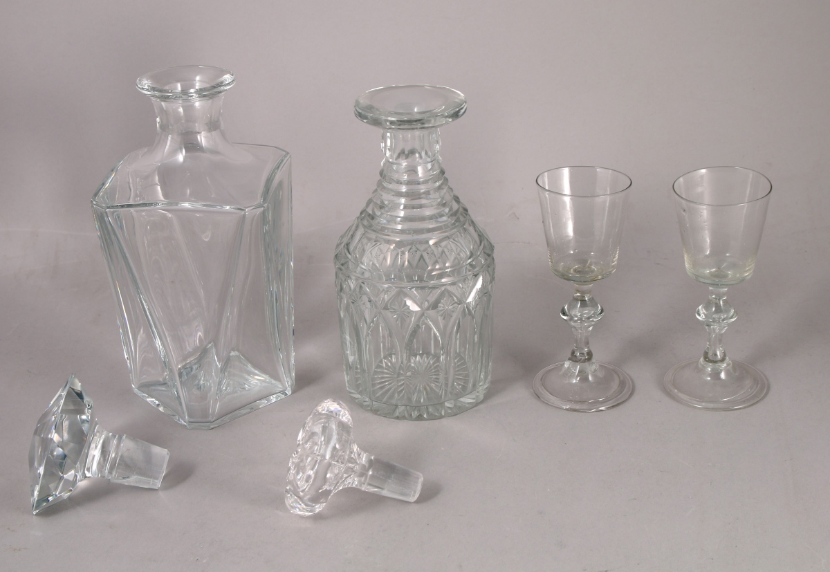 JOINT: deux CARAFES en cristal, une par BACCARAT à pans coupés, l'autre par SAINT-LOUIS à décor gravé d'arcades. En l'état.