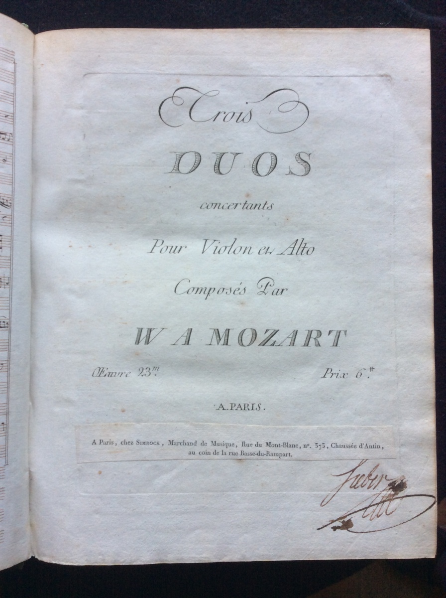 Duos, trios, quatuors, quintettes, publiés à Paris vers 1800 par Imbault (rue Saint Honoré n°200), Sieber (rue Saint Honoré), Simrock ( rue du Mont Blanc n°273) Pleyel ou Le Duc. L'étiquette de Imbault recouvre souvent la première adresse, qui est généralement celle de Sieber, rarement celle de Pleyel.