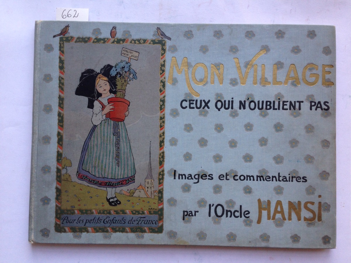 Bon exemplaire de cet ouvrage abondamment illustré, l'un des plus célèbres de Hansi, avec sur le premier plat le dessin d'une jeune Alsacienne portant un pot de myosotis, avec ces mots "Vergiss mein nicht". ("Ne m'oublie pas").
