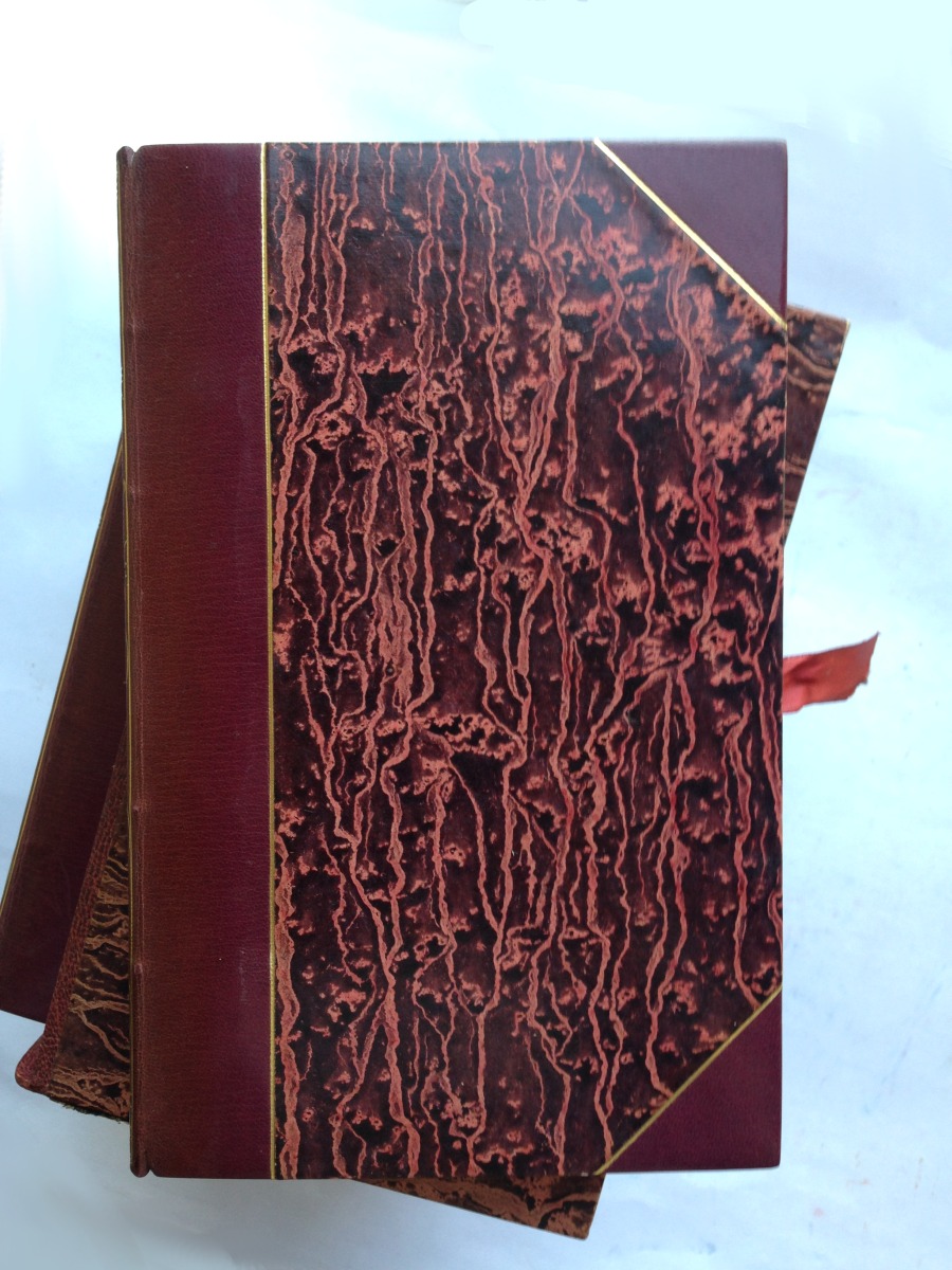 8 volumes in-8, 1/2 veau lie-de-vin à coins, dos très ornés. Têts dorées. Toutes les couvertures sont conservées. Exemplaire lavé. Reliure signée René Aussourd. Emboîtage. Ex-libris à l'encre fin XIXème Gustave Morel sur les faux-titres. (Quelques rares rousseurs ; cernes clairs de mouillures dans le tome VIII et dernier).