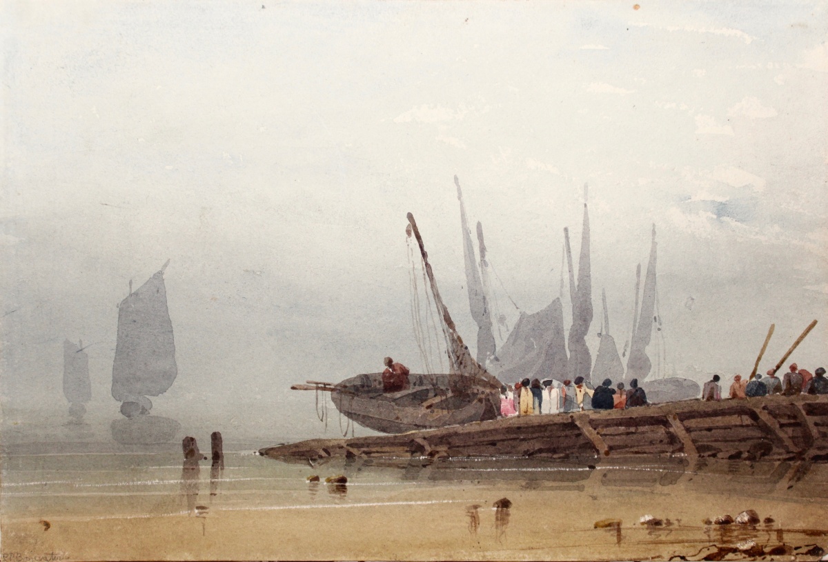 Nous remercions Monsieur Patrick Noon qui nous a confirmé d'après des photographies l'authenticité de cette marine de Bonington et la date des années 1818-1819.