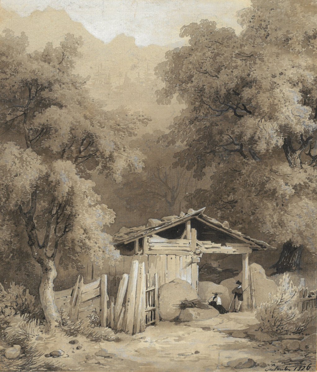 Augustin ENFANTIN (Belleville 1793 - Naples 1827)Cabanon dans un paysage...