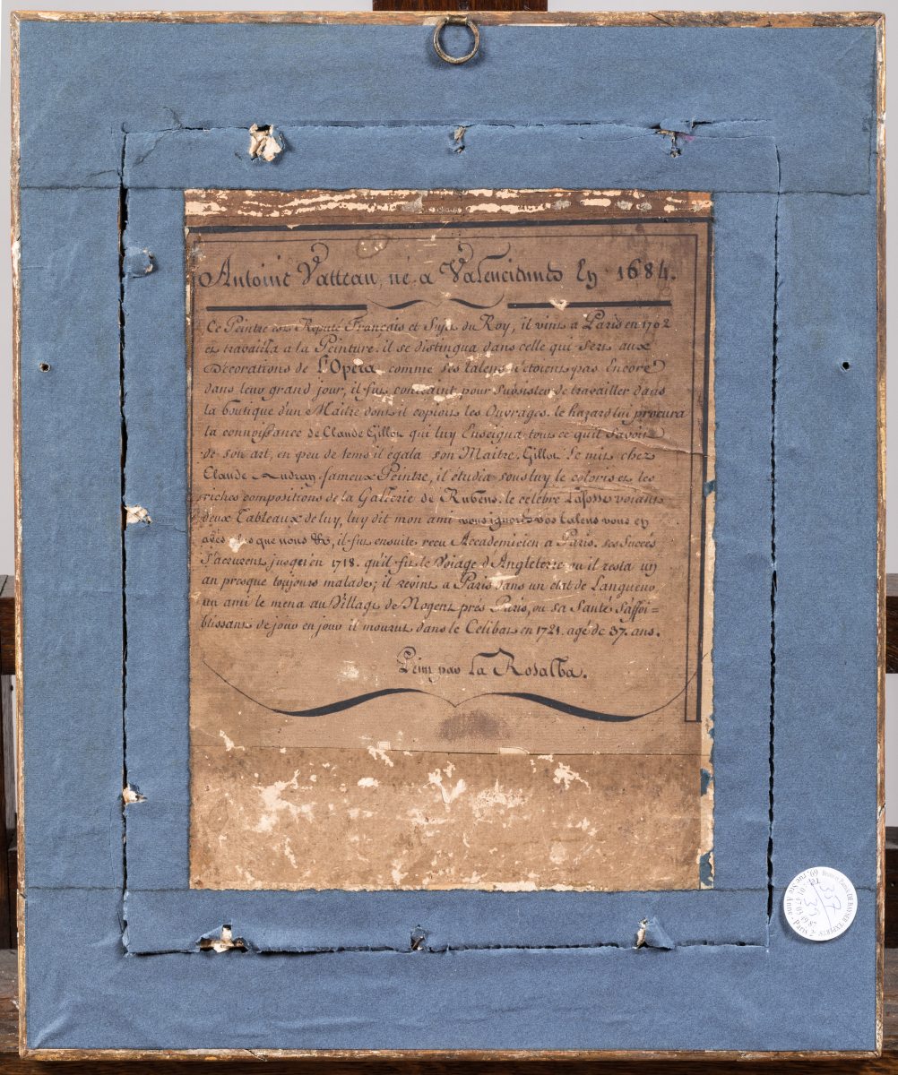 À Paris depuis mai 1720, Rosalba Carriera rencontre Watteau pour la première fois le 21 août de la même année, alors que celui-ci vient de rentrer d'Angleterre. L'admiration de Watteau pour la Vénitienne ne fait aucun doute. On sait en effet qu'il avait manifesté le désir de la rencontrer comme en témoigne la correspondance entre Vleughels et Rosalba, le 20 septembre 1719, il écrivait: " Il y a ici un excellent homme nome Mr Vatteau dont peut être vous avez entendu parler, il souhaitteroit bien vous connoitre [