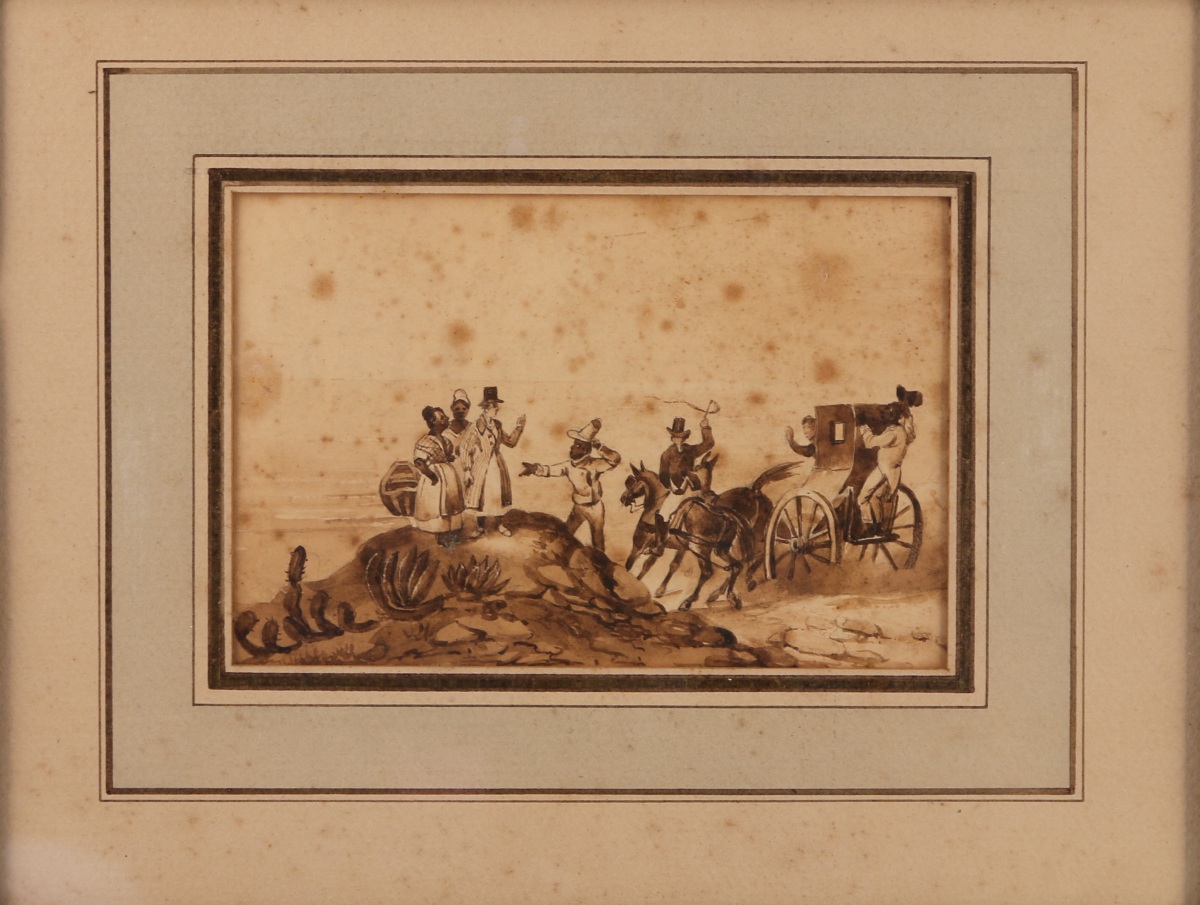 "Sepia du comte de Novion / Le bain (?) en voiture à la Guadeloupe".