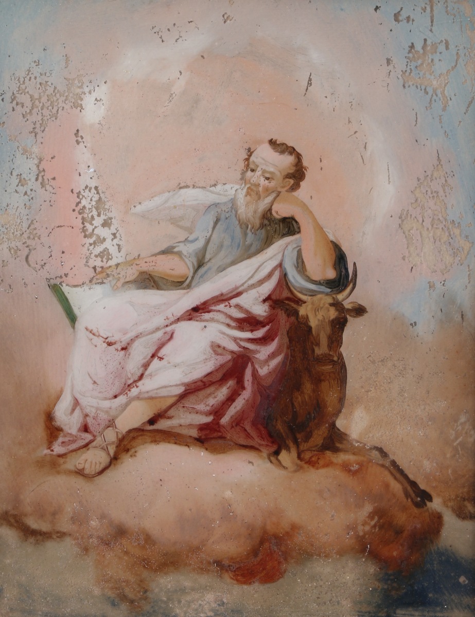- L'évangéliste saint Luc et le boeuf dans les nuées. Haut. 25,5, Larg. 19,5 cm. (manques)