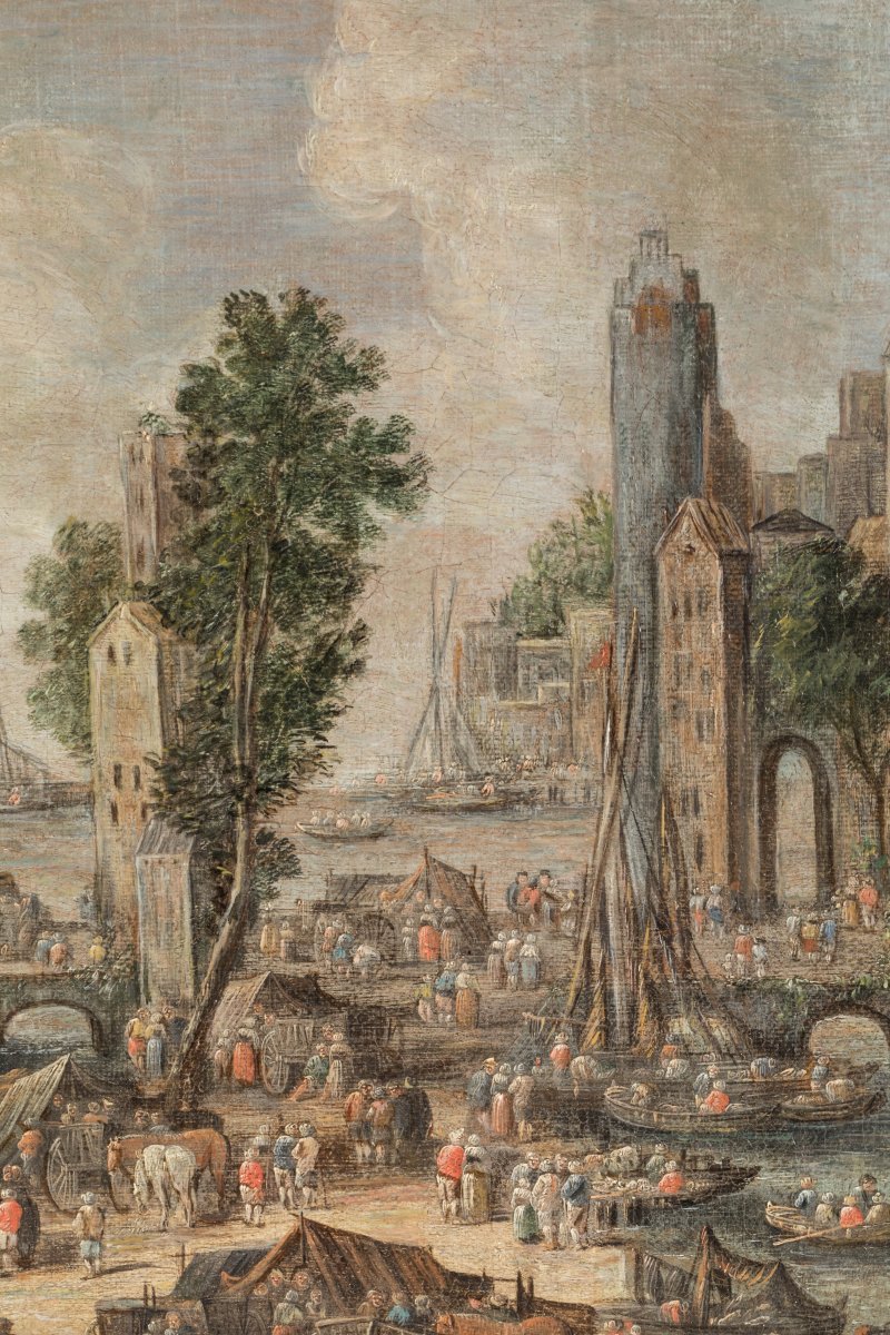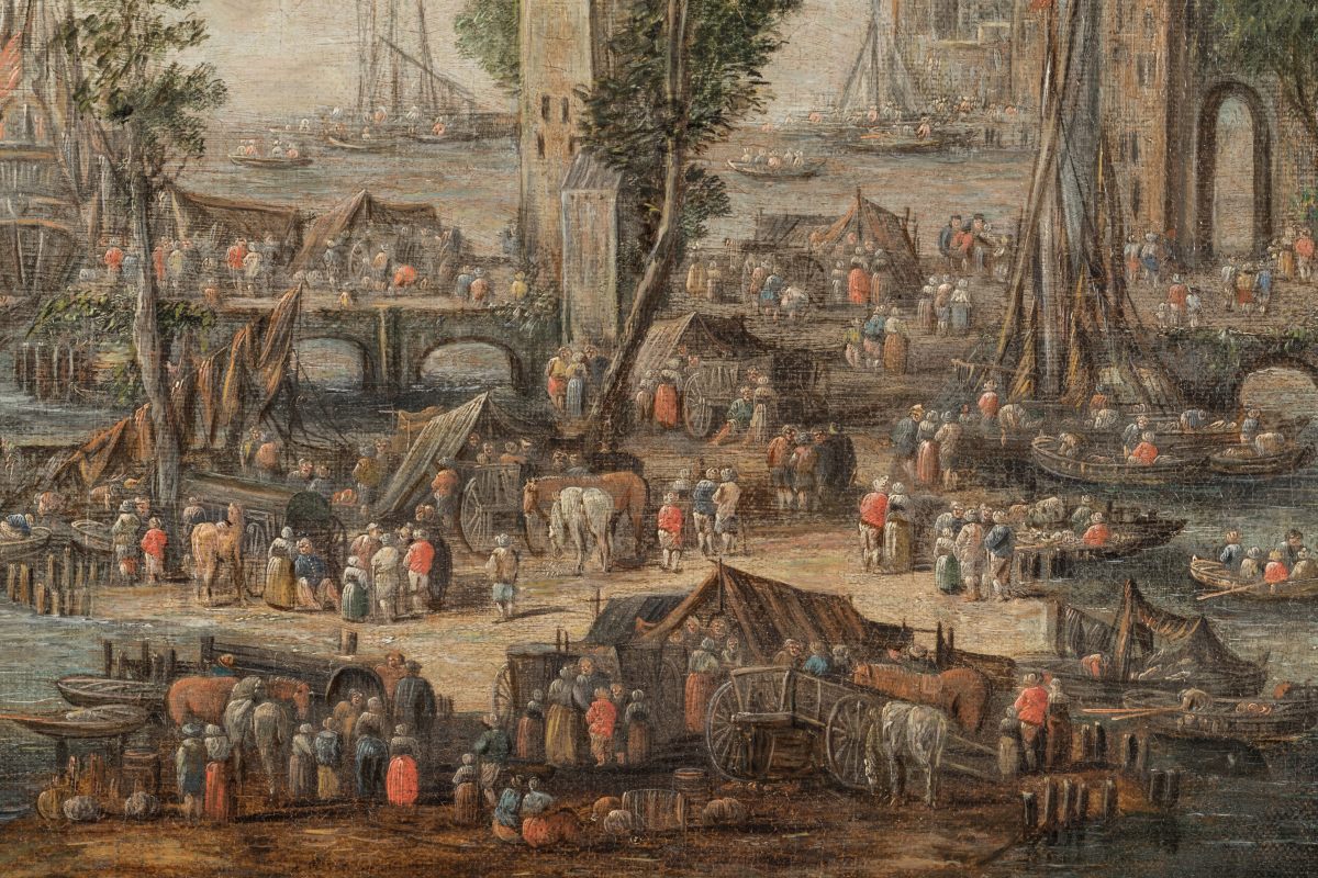 École FLAMANDE du XIXe, suiveur de Pierre CASTEELS.Scène portuaire.Toile.Haut. 53,...