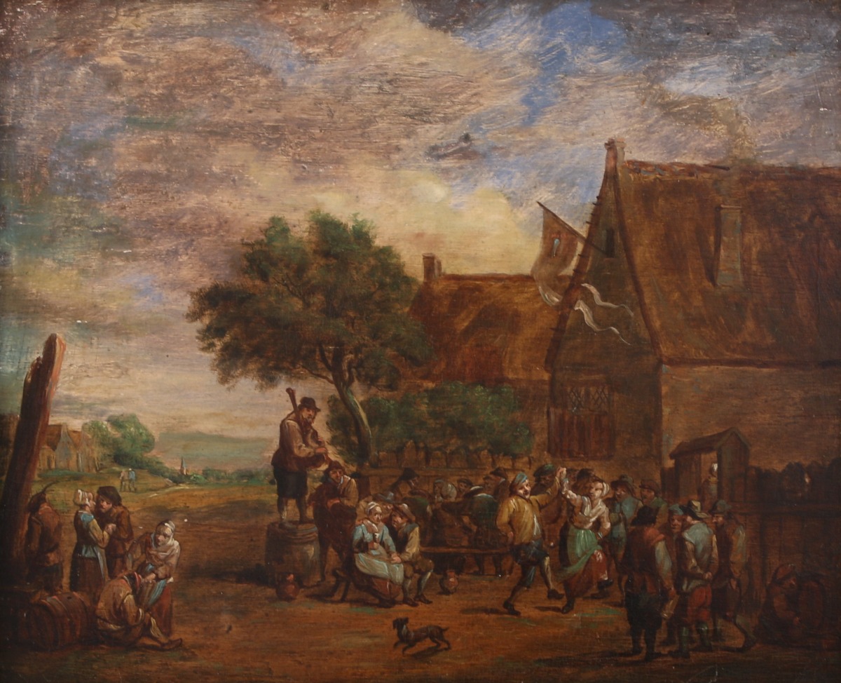 TENIERS, d'aprèsFête de village.Panneau.Haut. 21, Larg. 25 cm.