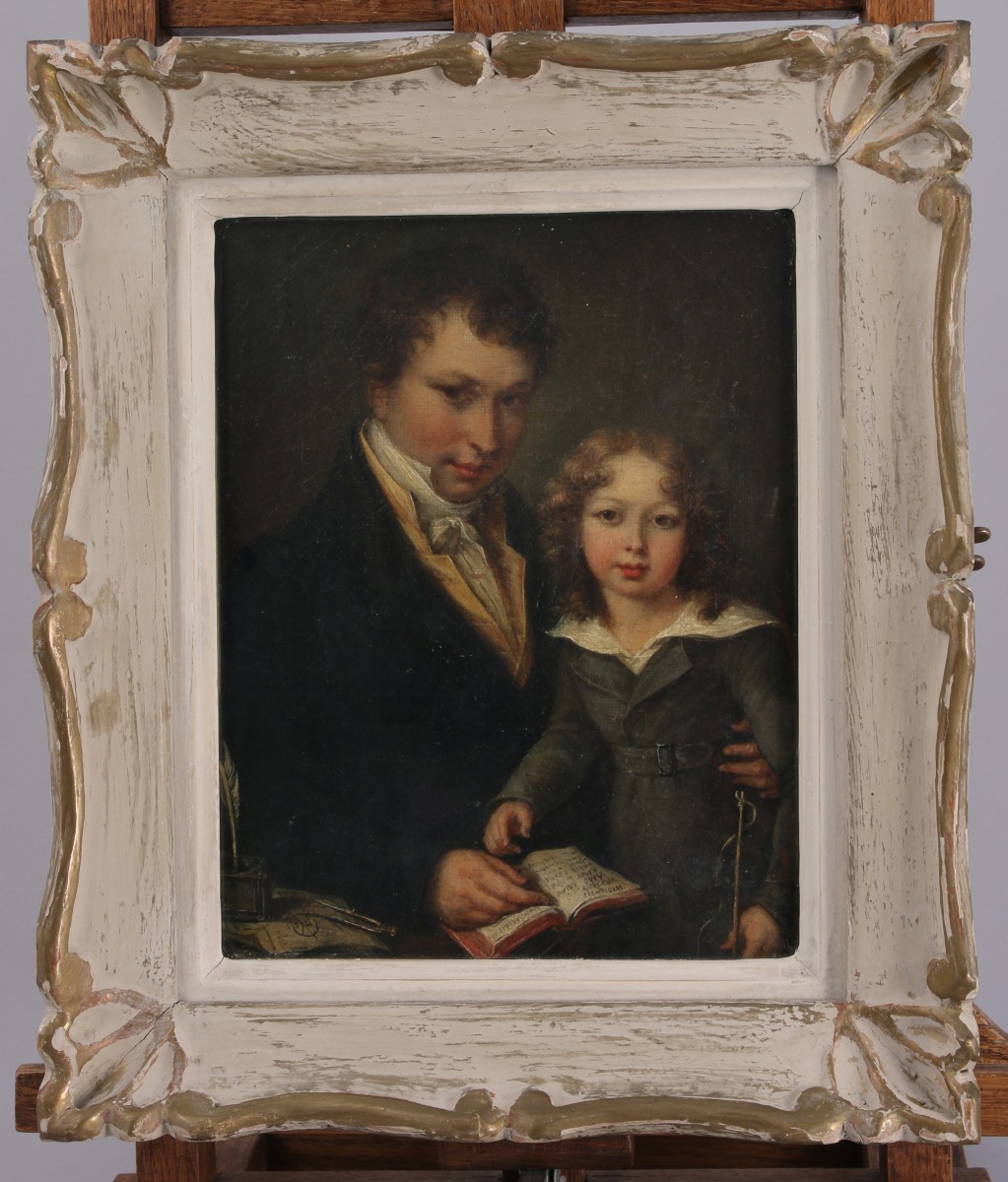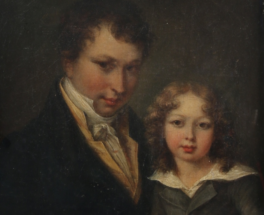 École FRANÇAISE vers 1820.Portrait d'un père et de son fils.Huile...