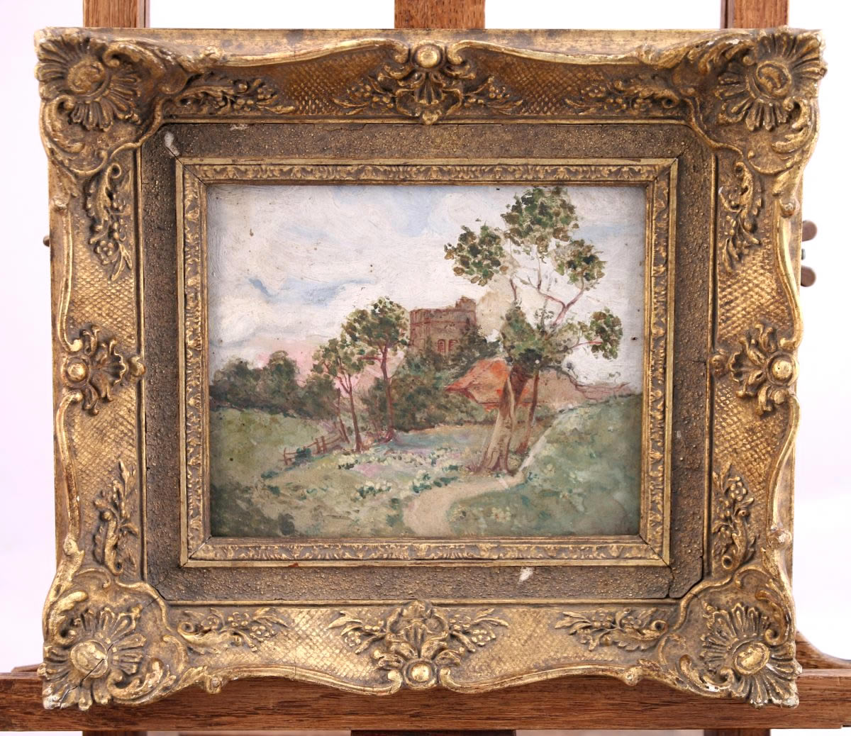 JOINT: École FRANÇAISE de la fin du XIXe. Église de campagne. Carton fort. 12,5 x 15,5 cm.