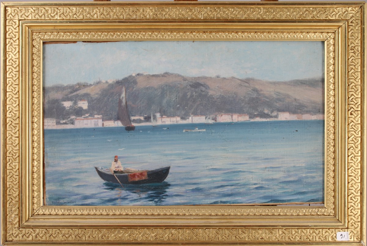 Panneau. Signé "Beyl.elev?.Constantinople" en bas à gauche