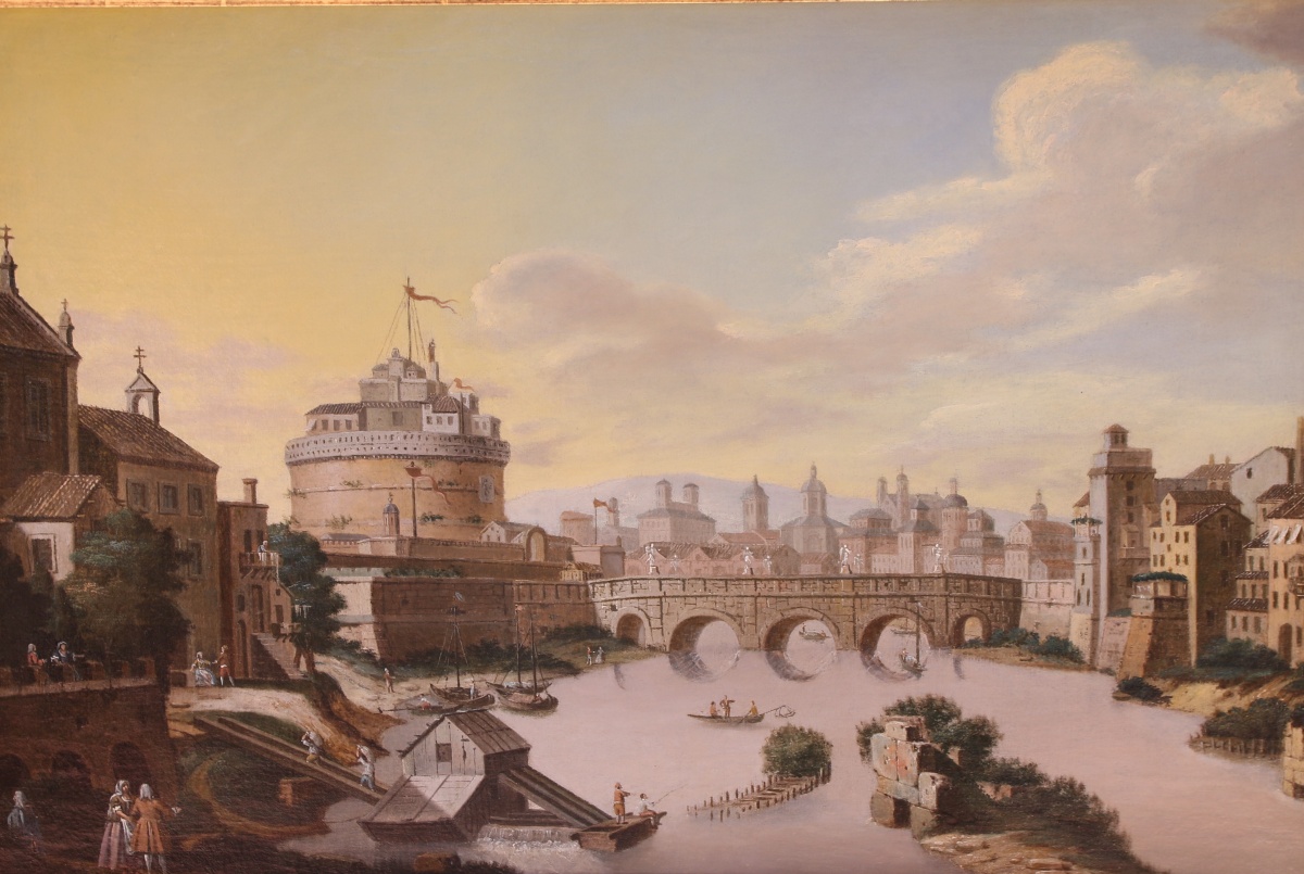 Notre tableau présente des similitudes avec une oeuvre de Caspar Van Wittel dit Vanvitelli, le Château Saint Ange vu du Sud, c. 1690.