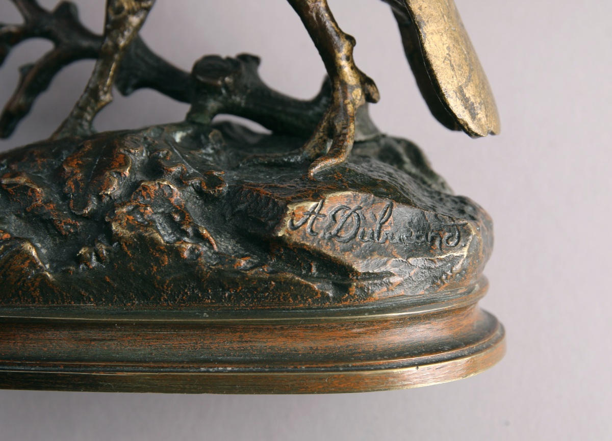 Bronze à deux patines brune et mordorée. Signé sur la terrasse.