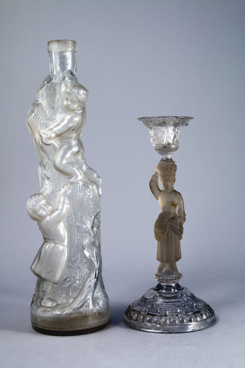 BOUTEILLE et FLAMBEAU en verre pressé-moulé: