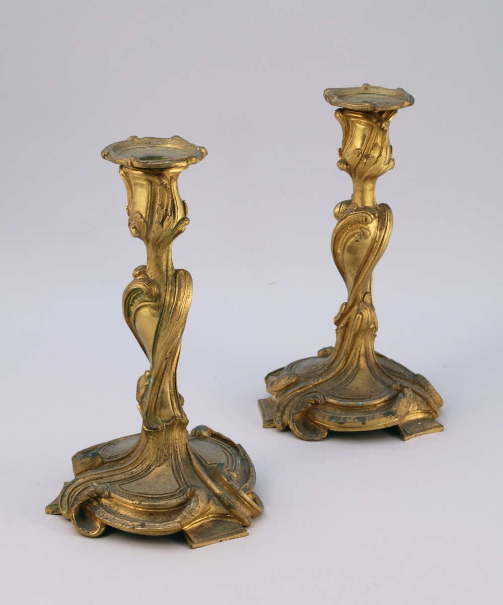 et doré au fût balustre torsadé soutient le binet orné de rinceaux feuillagés. La base chantournée à décor d'acanthes. Marque de palais à l'encre sous la base.