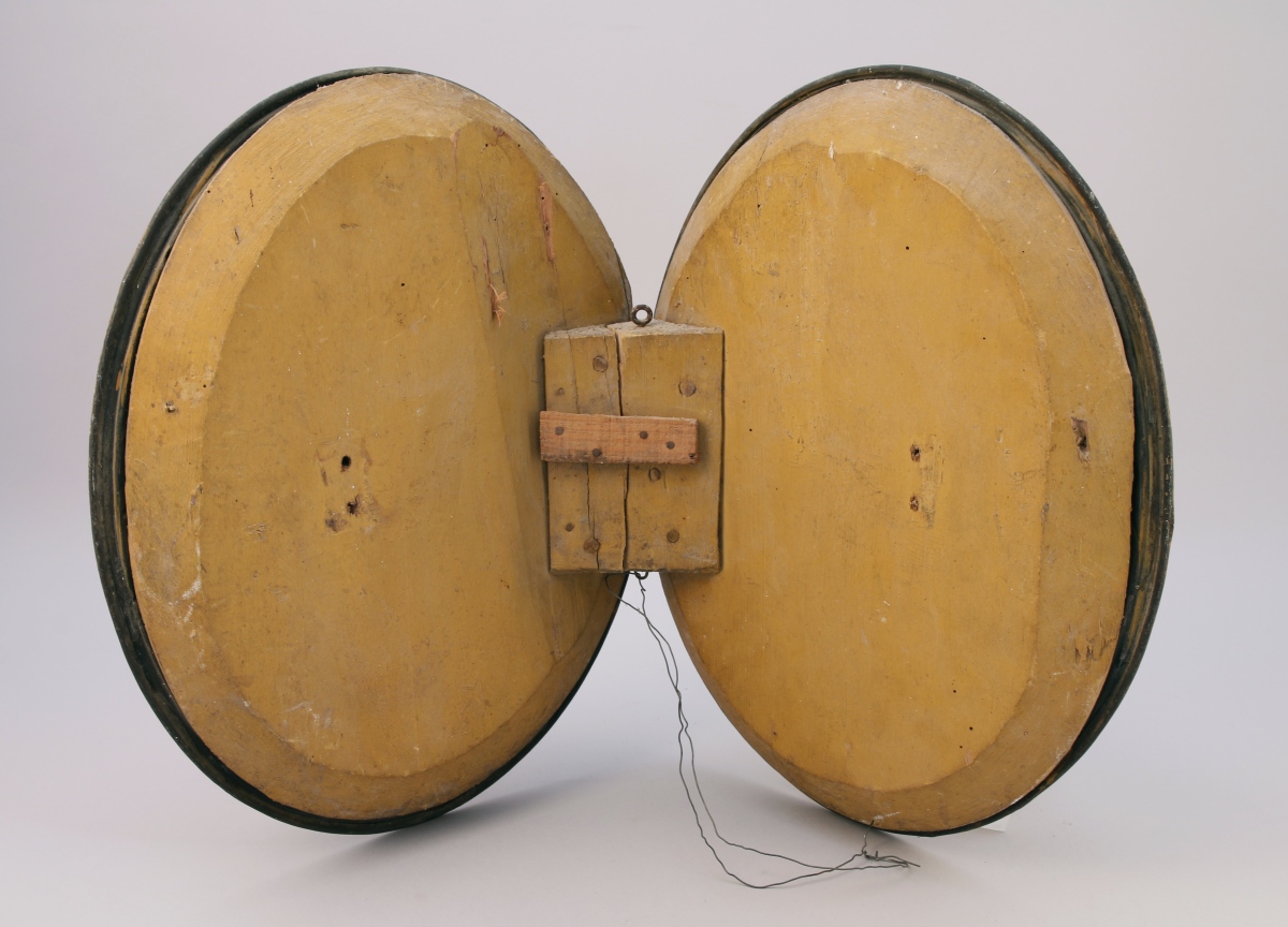de forme ovale en laiton repoussé et laqué or aux armes de l'Empire. Elles sont montées sur une structure en bois. XIXe.