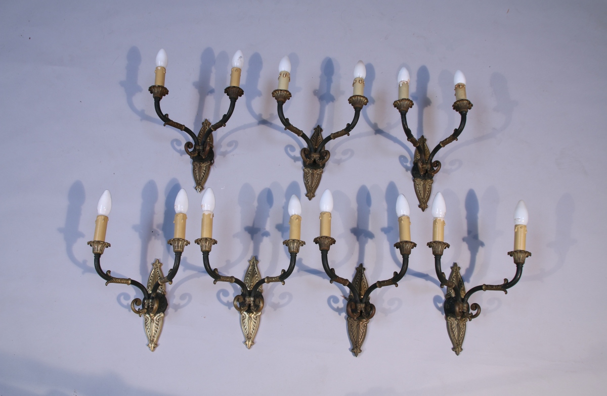 SUITE de SEPT APPLIQUES en bronze