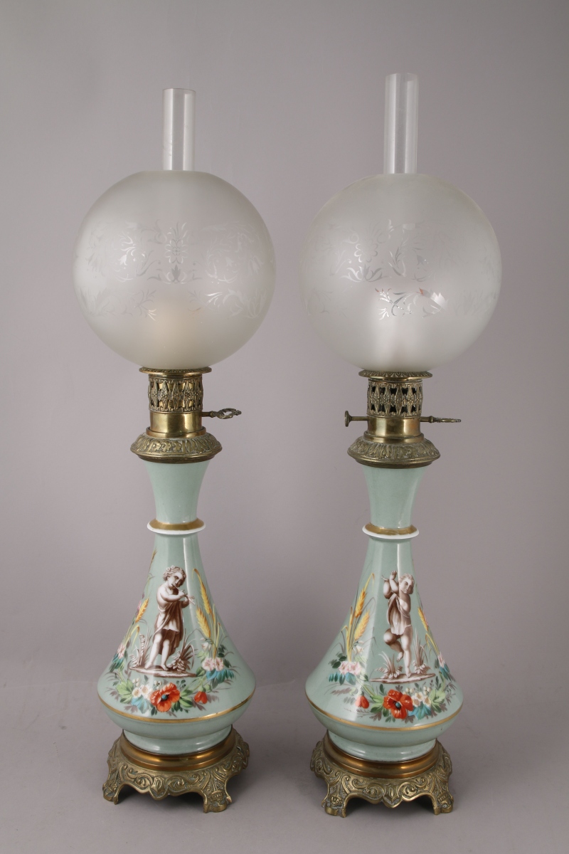 PAIRE DE LAMPES à PÉTROLE de forme balustre en porcelaine