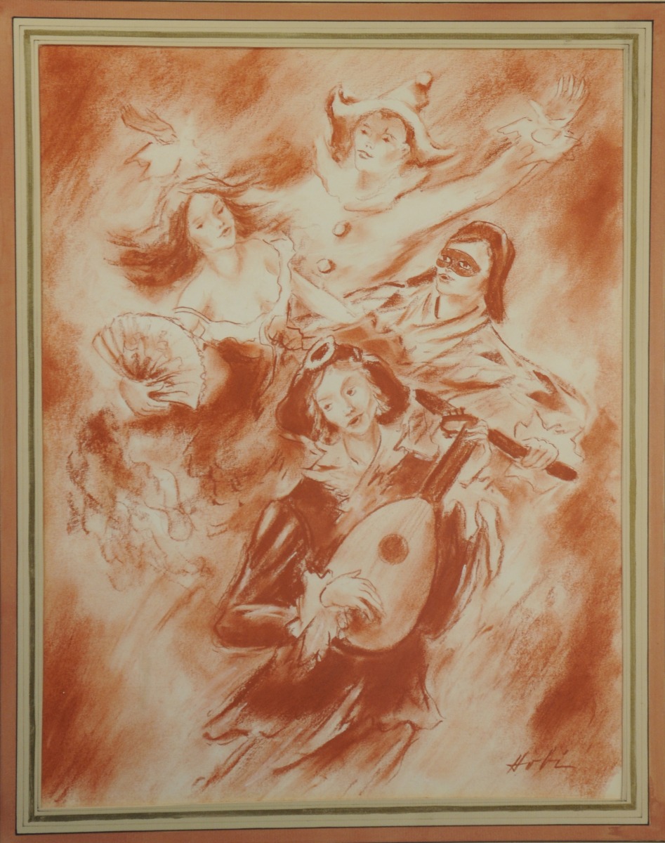 Paire d'épreuves, genre sanguine signée en bas à droite.