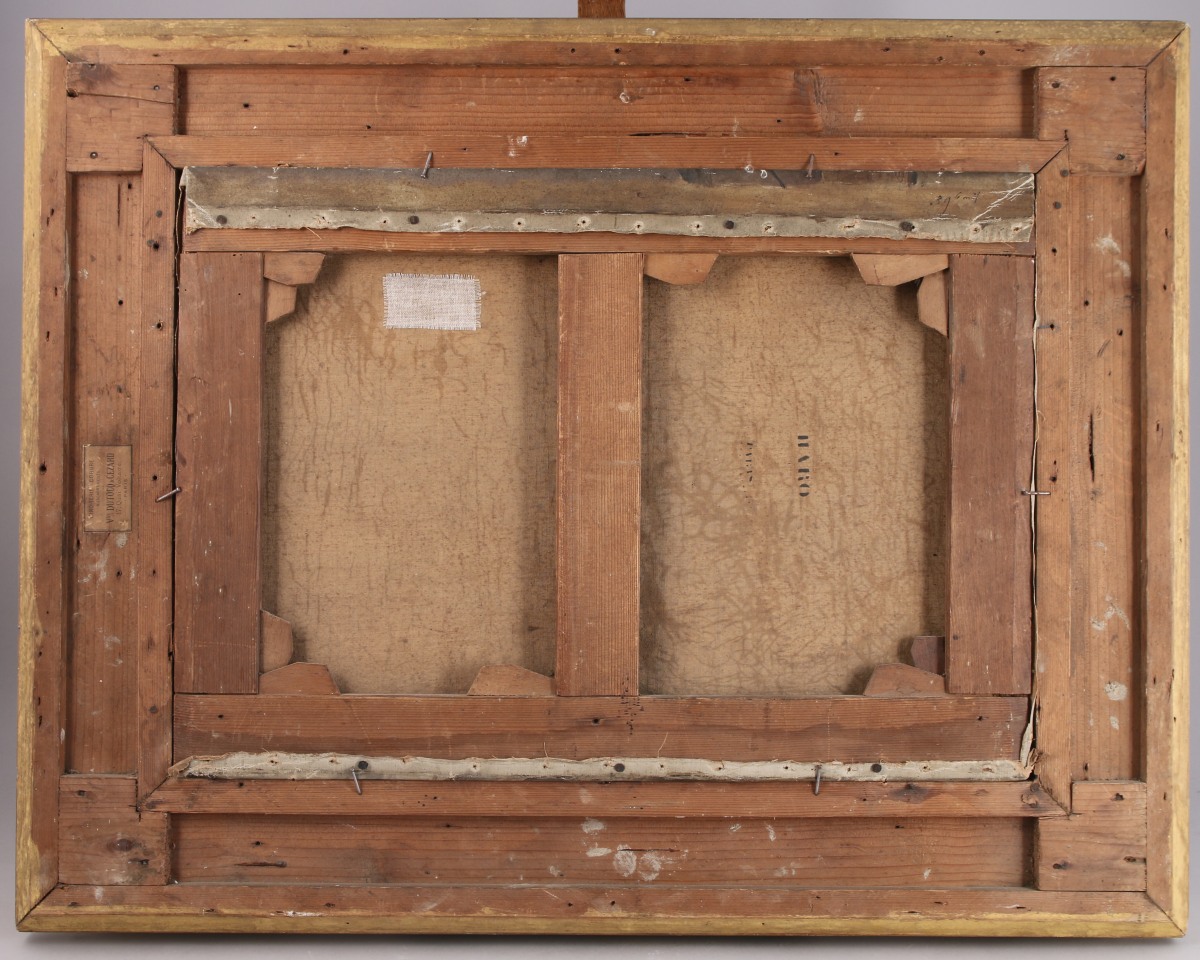 Cachet du marchand parisien Haro (1826-1847) au dos, étiquette de la Veuve Dutocq - Cézard, fin XIXe, sur le châssis, légère restauration sur la toile.