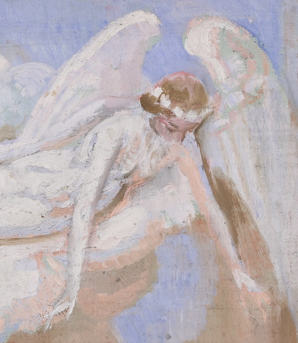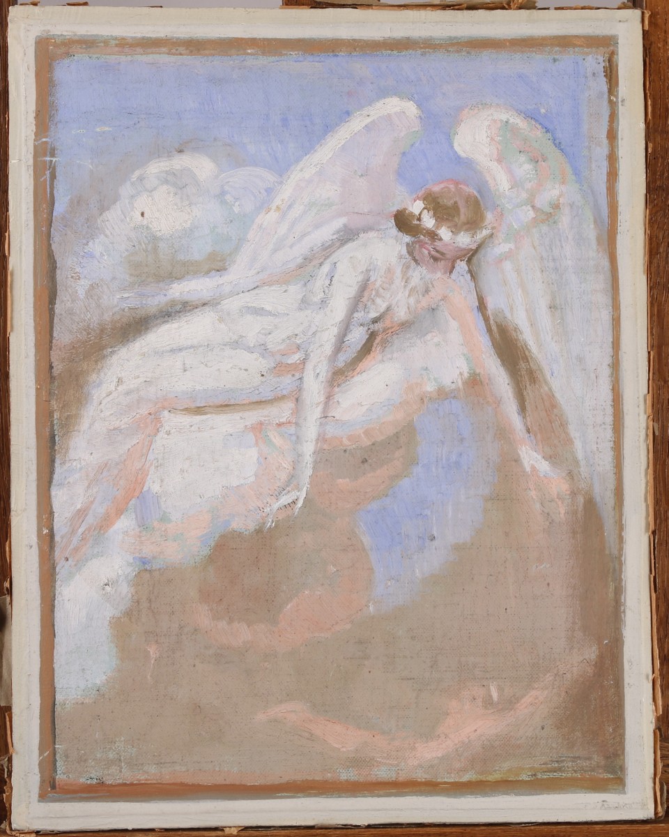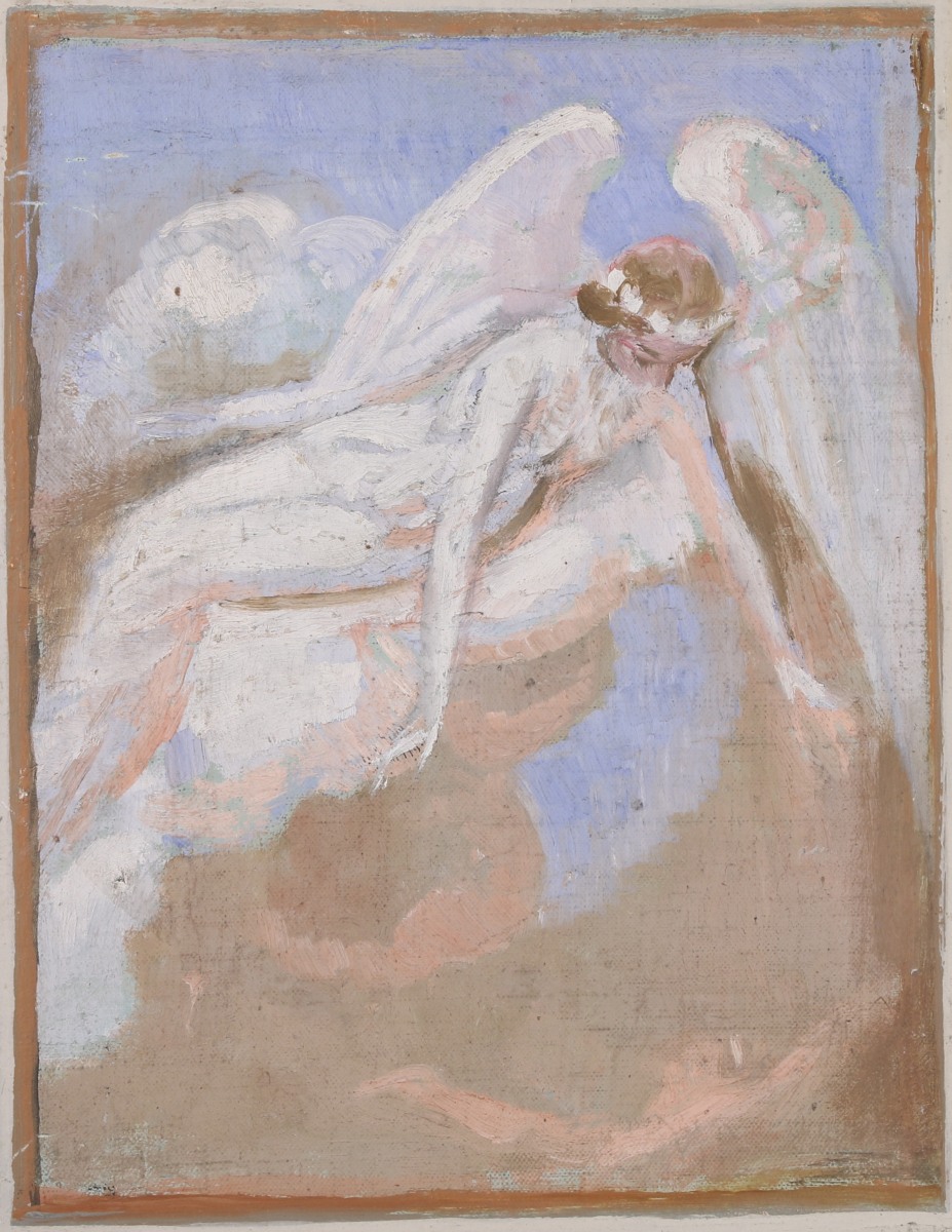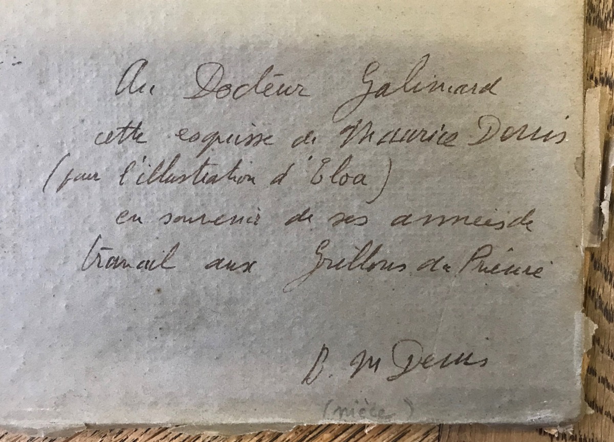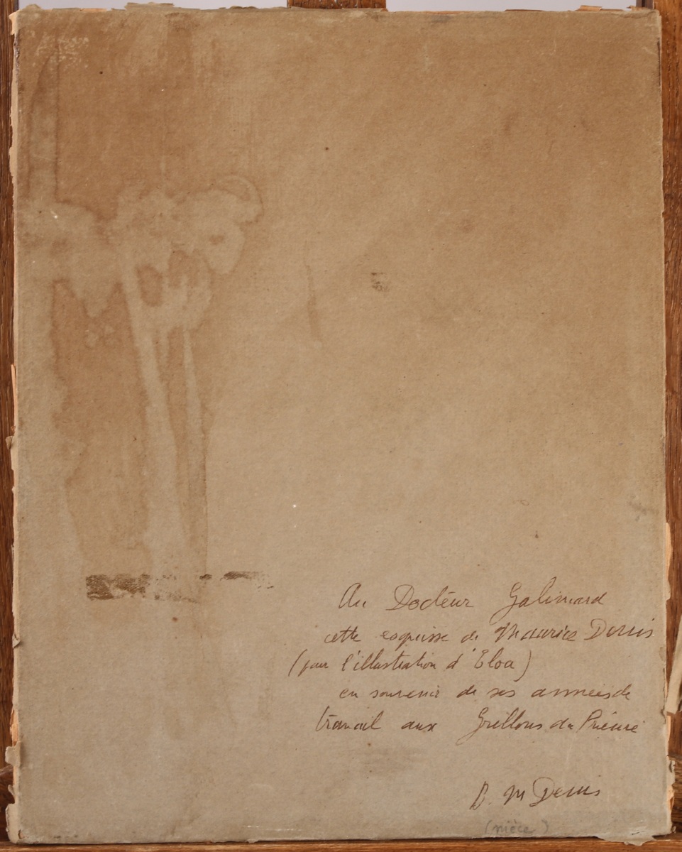 Envoi au dos "Au Docteur Galimard / cette esquisse de Maurice Denis / (pour l'illustration d'Éloa) / en souvenir de ses années de / travail aux Grillons du Prieuré / B M Denis"
