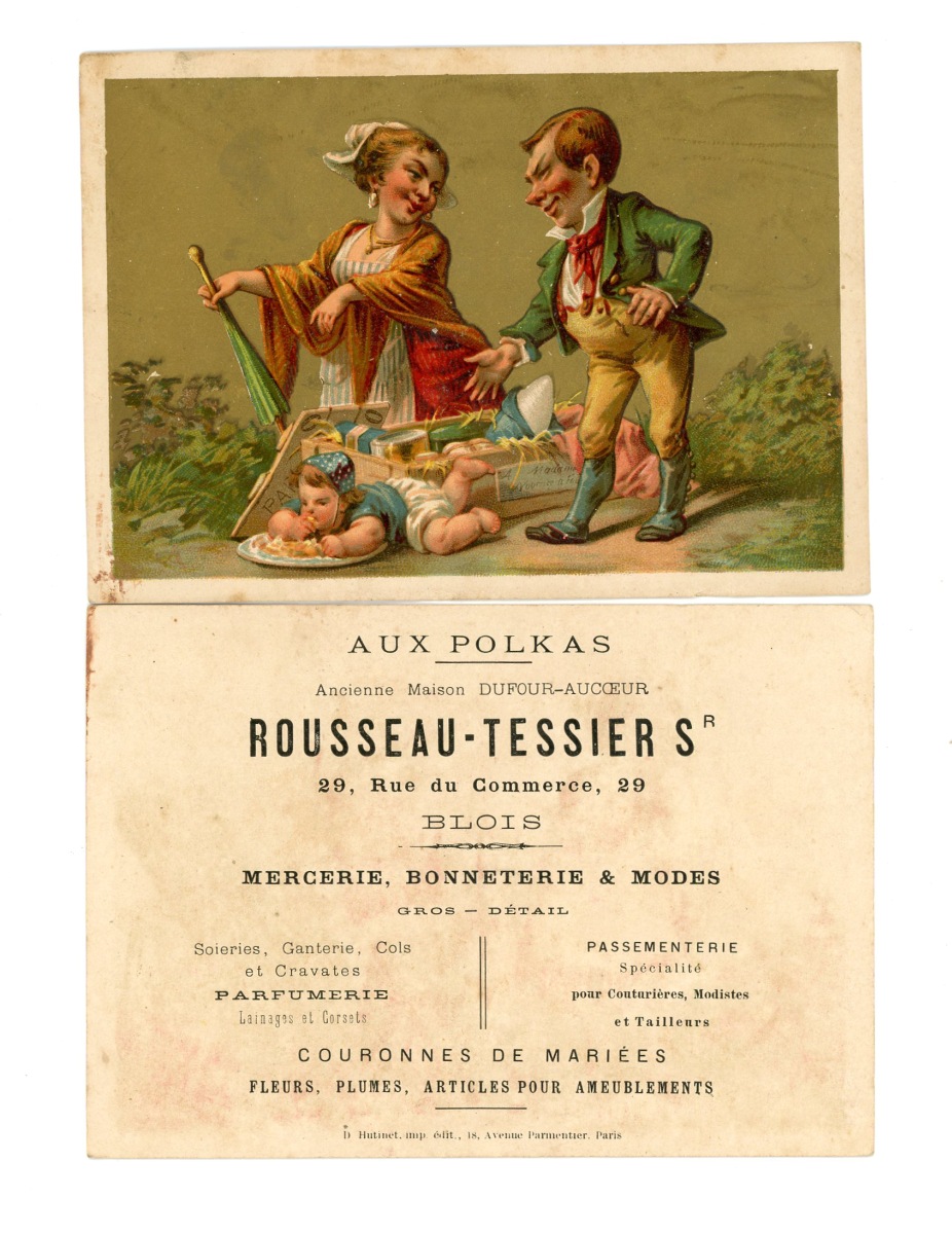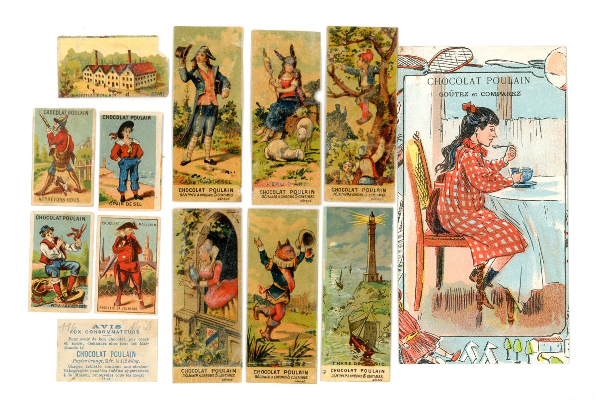 [IMAGERIE] Loir-et-Cher: 76 chromos et images, tous formats, et + de 100 vignettes, chocolat POULAIN. Etats divers, qqs multiples. - Melles BOISSEAU mercerie à Saint Aignan [1 p.], Melle Lambert mercerie à Saint Aignan [2 p.], " Aux Polkas " mercerie à Blois [2 p.], Etbt Martineau à Blois [5 vignettes].