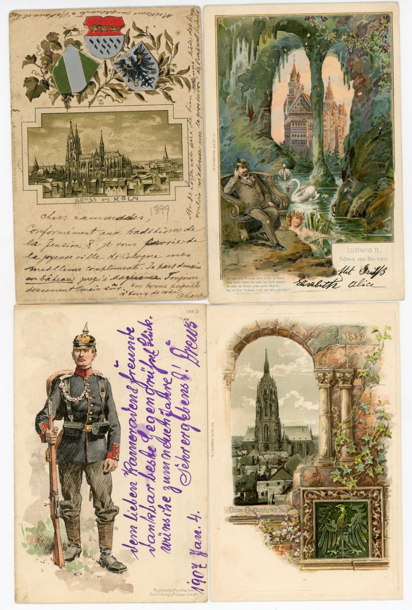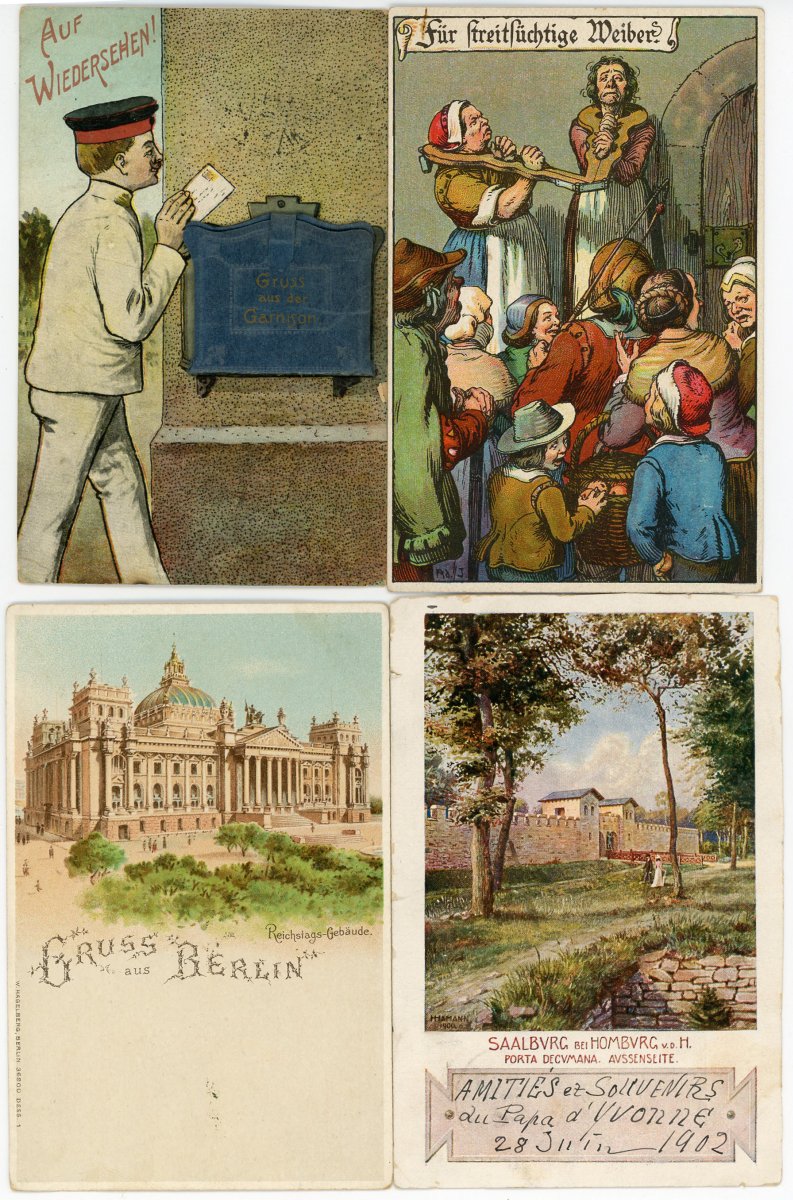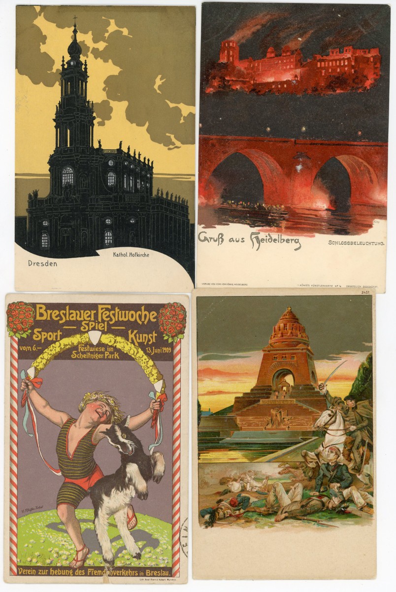 [ALLEMAGNE] env. 475 cartes postales anciennes et cpsm: villes, animations, sites et châteaux, illustrations et illustrateurs, satiriques, puzzle, etc.