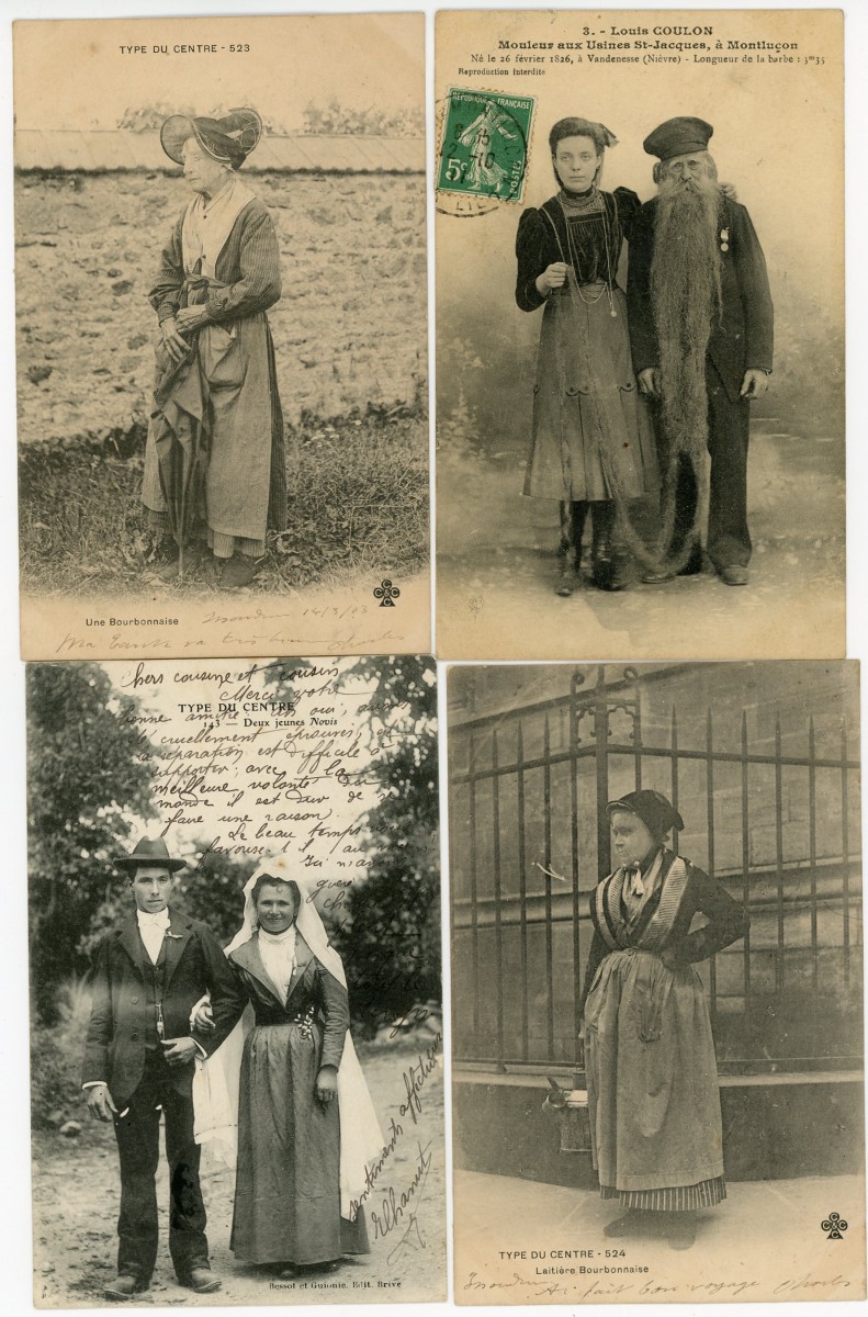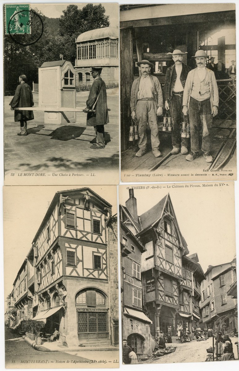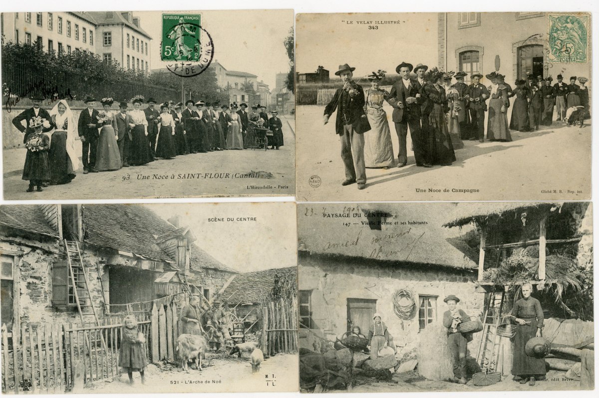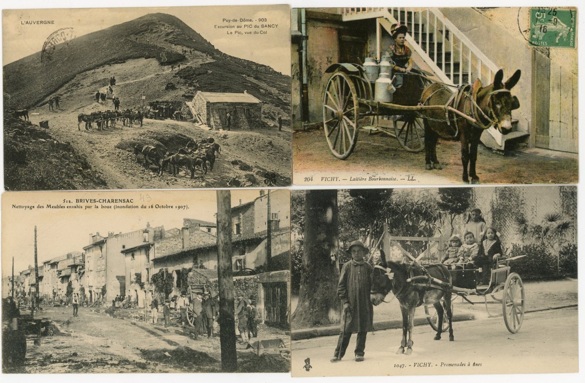 [AUVERGNE] env. 335 cartes postales anciennes et qqs cpsm, principalement scènes et types [env. 70 cp], et villes, qqs villages, stations thermales, animations, etc.