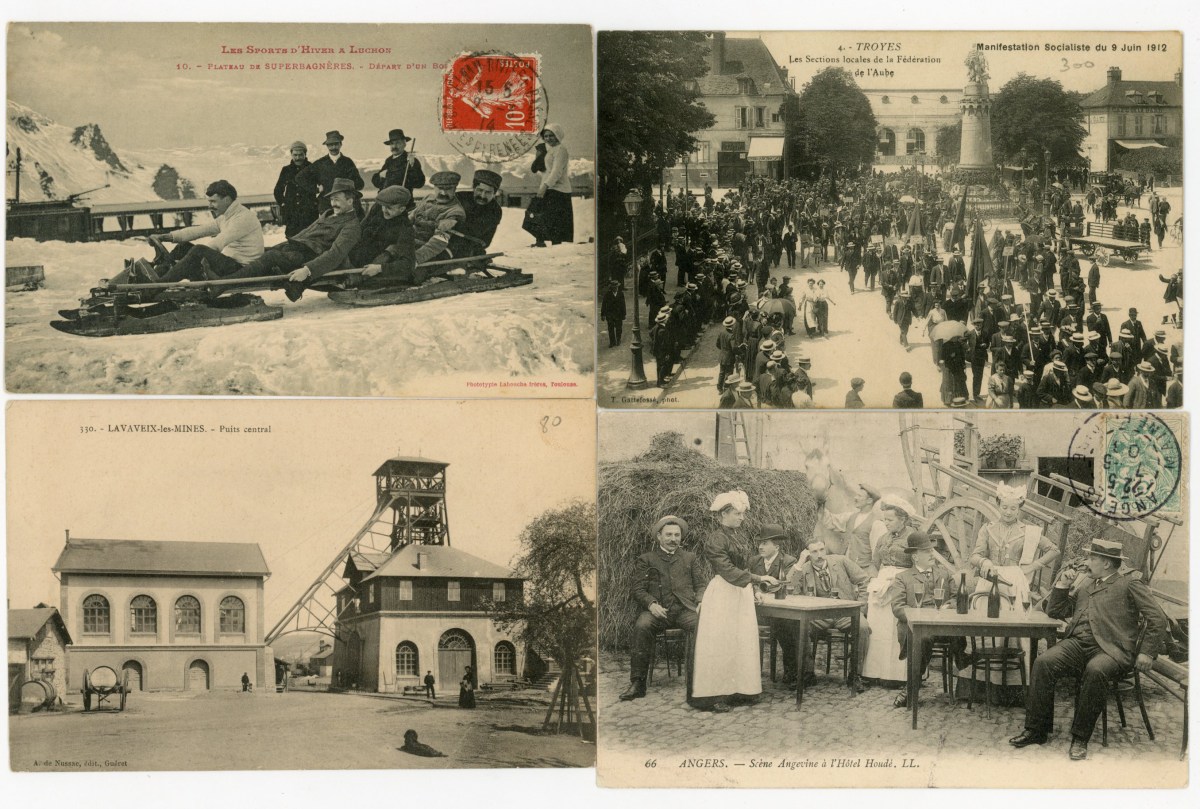[FRANCE] env. 1730 cartes postales anciennes et cpsm: villes, villages, animations, sites et châteaux, casernes, scènes et types. Dont 50 cartes photos à identifier, Gironde [109 cp], Haut-Rhin [48 cp], Landes [42 cp], Marne [95 cp], Meurthe-et-Moselle [119 cp], Vosges [36 cp], Nièvre/Morvan [50 cp], Aube, Corse, Monaco, etc.