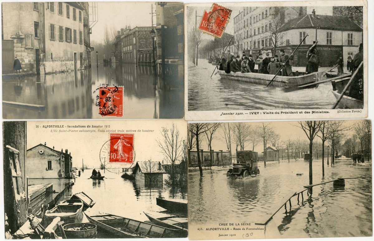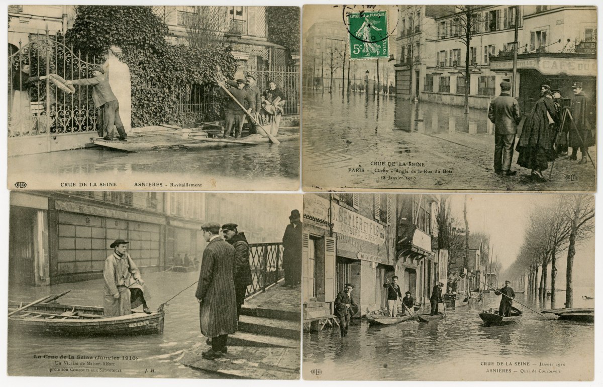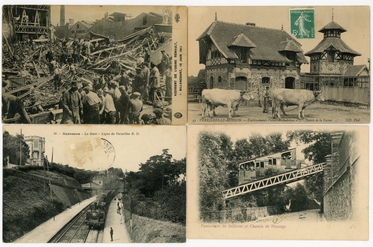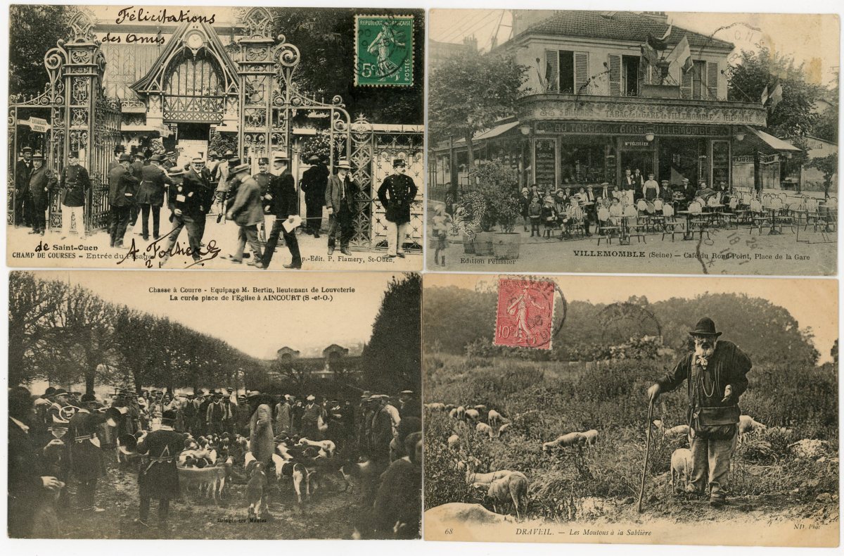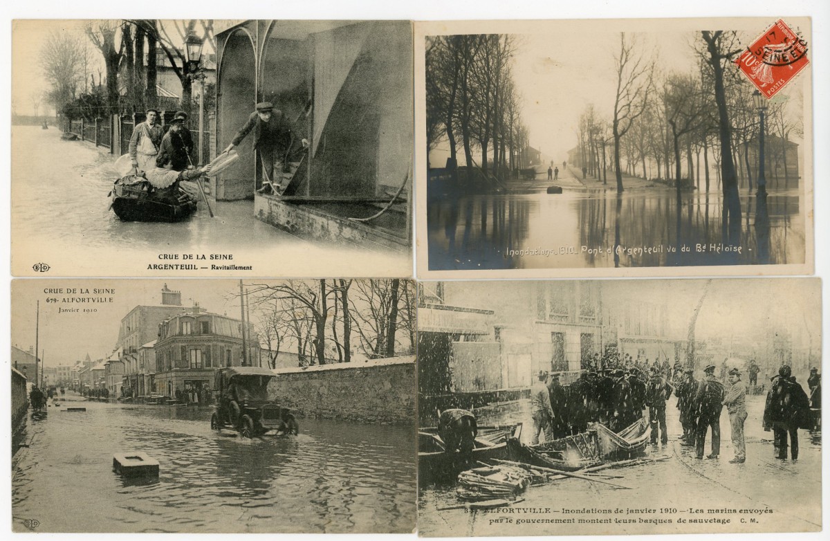 [RÉGION PARISIENNE] Env. 320 cartes postales anciennes et cpsm, dépts 77-78-91-92-93-94 et 95, villes, villages, animations, sites et châteaux, crue de la Seine [41 cp], etc.