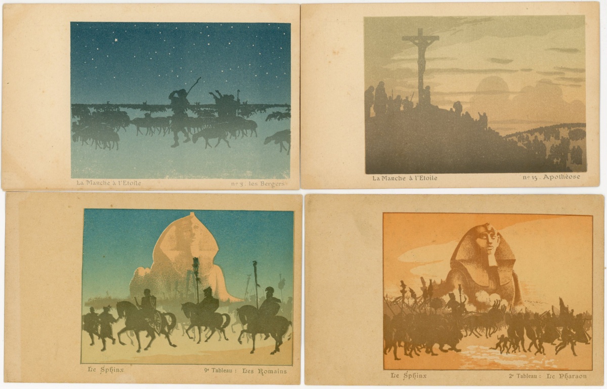 [ILLUSTRATIONS] 165 cartes postales anciennes et cpsm, illustrateurs et illustrations: 6 cp de la " COLLECTION DES CENT " (Caran d'Ache, Wely, Bonnet, Grasset, Giraldon, Bac) - Henri RIVIERE: séries complètes de 15 cp " La Marche à l'Etoile " et 16 cp " Le Sphinx ", non écrites ni circulées - Femme africaine par ABDOULAYE, tirailleur - 11 cp par ORENS - 5 cp " La Mer " par BESNOU - 3 cp par Carl LARSSON - 2 cp par MEDSILLE - BARTELS - 14 cp Photogravure (H. RYLAND, P. TARRANT, E. WALBOURN, G.H. EDWARDS, BISSON, CRESSWELL, WOOLLETT, BENNETT) - FUGGENBERGER, etc.