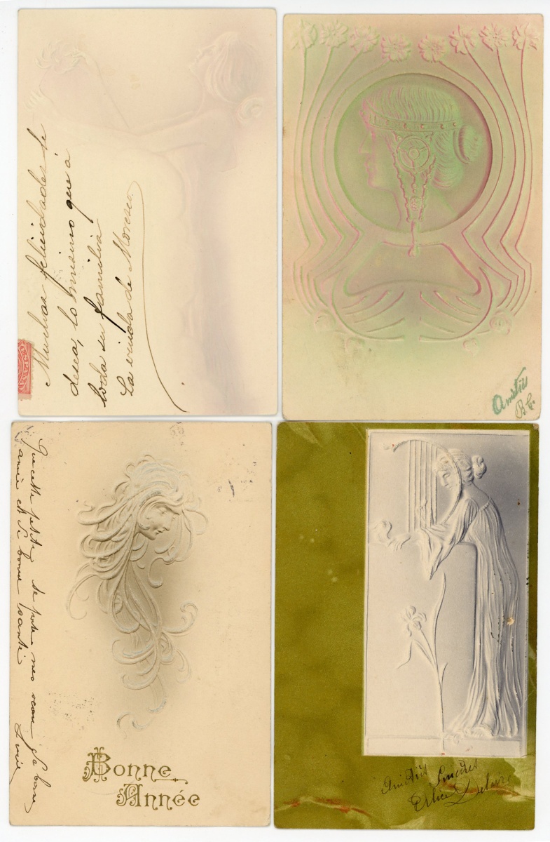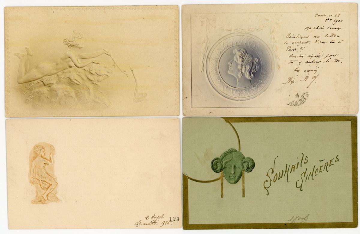 ![Lot 96 - [ART NOUVEAU] 31 cartes postales gaufrées et illustrées dans le... [ART NOUVEAU] 31 cartes postales gaufrées et illustrées dans le...](<150:ddoc-728695-9a3a550b7d8211f707028ea0d67757aa-p100201716600126.jpg, <480:ddoc-728696-a7a402a69588cba35ada09b641cf596e-p100201716600126.jpg, <640:ddoc-728697-ec11cba0bcc3f39e753b87a5af51e61d-p100201716600126.jpg, >640:ddoc-728694-39b5d07934f59825edf0f8bcb2a0af6d-p100201716600126.jpg)