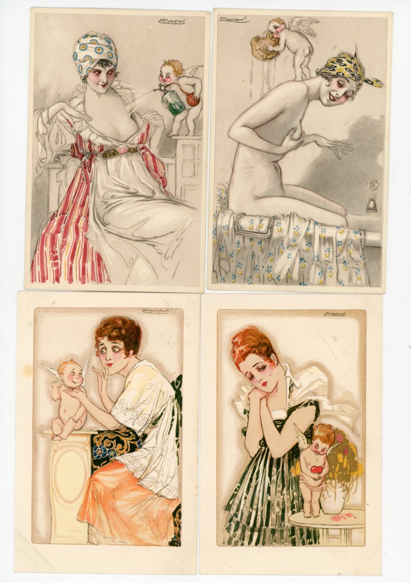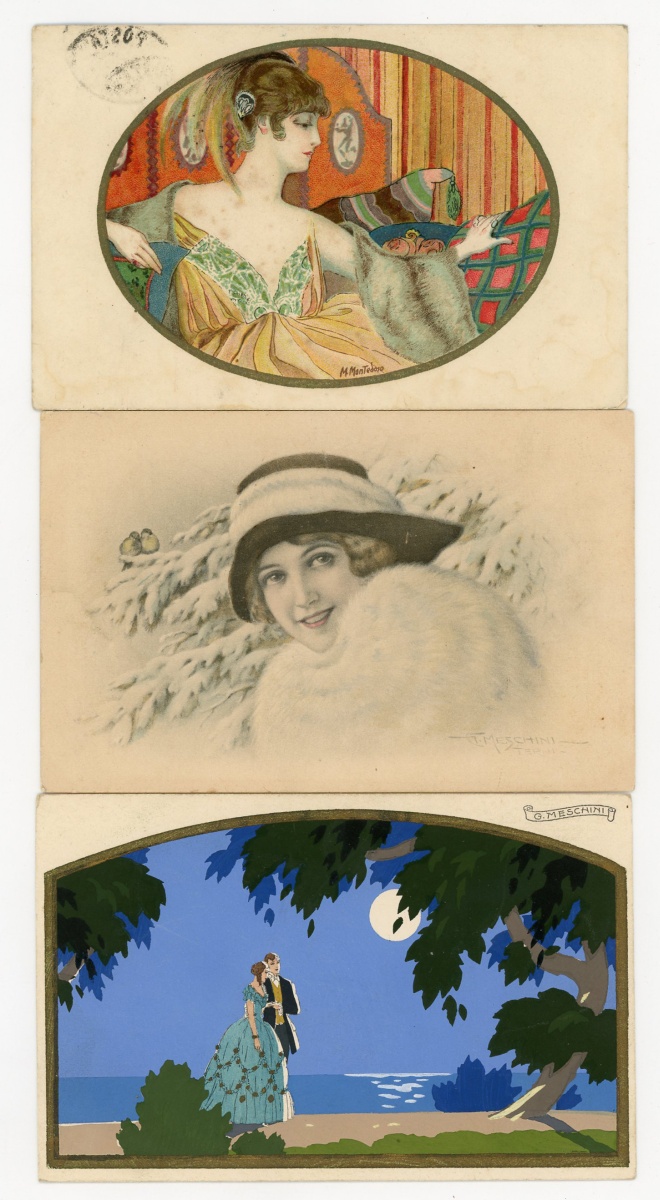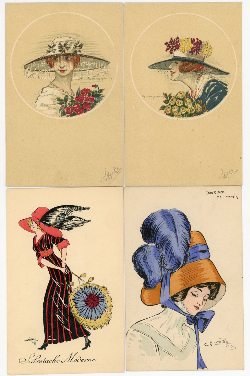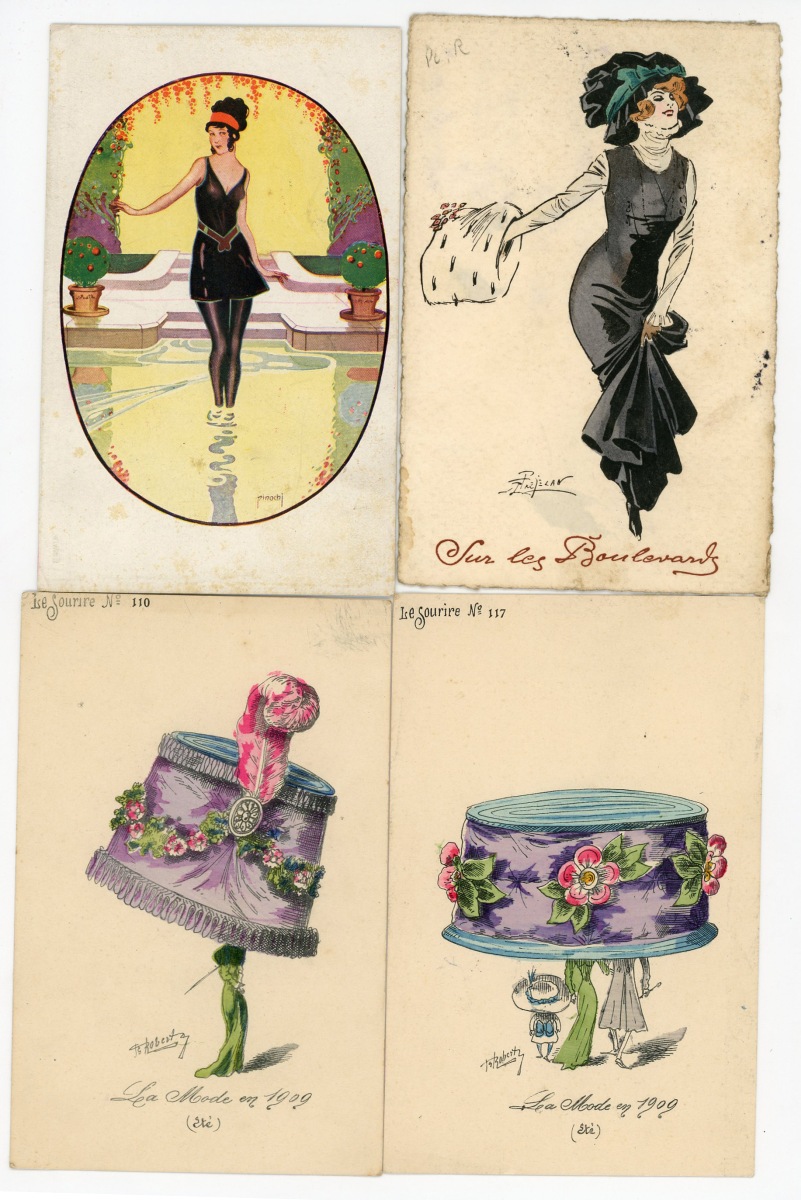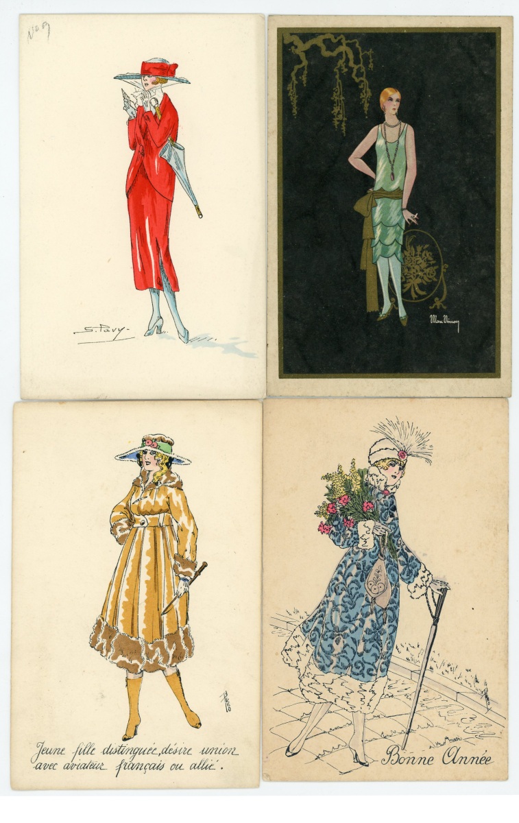[ILLUSTRATEURS] Réunion de + de 695 cartes postales anciennes et cpsm, thème de la Femme et de la Mode, illustrateurs et illustrations, vers 1900-1930, toutes différentes, certaines peintes à la main, dont: Jack ABEILLÉ [3 cp] ; ALBERTINI [1 cp] ; ALICE [1 cp] ; " B. " [6 cp] ; Carlos BADT [6 cp] ; Gil BAER [2 cp] ; BALBO DEL VELLA [1 cp] ; BECK [1 cp] ; Alberto BERTIGLIA [6 cp] ; BIANCA [1 cp] ; BIANCHI [4 cp] ; BOB [1 cp] ; Philip BOILEAU [11 cp] ; S. BOMPARD [4 cp] ; Henri BOUTET? [1 cp] ; Wh. BRAUN [5 cp] ; BRIARÉE [3 cp] ; Ethel C. BRISLEY [13 cp] ; Adolfo BUSI [8 cp] ; Arthur BUTCHER [8 cp] ; G. CALDANA [4 cp] ; C. CALDERARA [2 cp] ; Elda CENNI [1 cp] ; CEOLOMBO [3 cp] ; CHIOSTRI [1 cp] ; P. Earl CHRISTY [3 cp] ; T. CORBELLA [44 cp] ; CREMIEU [1 cp] ; Géo DESAIN [2 cp] ; DOUKY [3 cp] ; DROG [7 cp] ; A. EICHENBERG [2 cp] ; Edy PARIS [15 cp] ; FERN [4 cp] ; FIDLER [4 cp] ; Harrison FISHER [4 cp] ; R. FRANZONI [9 cp] ; Léo FONTAN [3 cp] ; GIRIS [4 cp] ; GUNN [1 cp] ; J. HARDY [5 cp] ; HEROUARD [6 cp] ; Knut HANSEN [2 cp] ; R. Ford HARPERG [4 cp] ; Helena HORWITZ [1 cp] ; Martin KAVEL [1 cp] ; Mela KOEHLER [1 cp] ; KOISTER [2 cp] ; R. KRATKI [3 cp] ; JULIA [1 cp] ; de JUYNE [1 cp] ; François LAFON [6 cp série La Jupe Culotte] ; Georges LEONNEC [4 cp] ; Ralph LESTER [1 cp] ; " E. LESUR " [1 cp] ; " LN " [5 cp] ; Fabius LORENZI [1 cp] ; Law LUXON [1 cp] ; " G.M. " [11 cp] ; F. MADI [4 cp] ; Frederiks MANNING [3 cp] ; Henri MANUEL [5 cp] ; Achille MAUZAN [35 cp] ; ; G. MESCHINI [7 cp] ; MEDSILLE [1 cp] ; Suzanne MEUNIER [12 cp] ; MIARKO [2 cp] ; MILLE [6 cp] ; Maurice MILLIERE [5 cp] ; MIKI [31 cp] ; A. MOLYNK [1 cp] ; MAGGY MONIER [12 cp] ; M. MONTEDORO [1 cp] ; MORIN [1 cp] ; Marjorie MOSTYN [2 cp] ; Georges MOUTON [7 cp] ; Charles NAILLOD [27 cp] ; Jacques NAM [2 cp] ; Giovanni NANNI [13 cp] ; A.A. NASH [1 cp] ; Max NINON [1 cp] ; E. OCCHIPINTI [2 cp] ; V. ORLANDI [1 cp] ; Sophie PADNEY [4 cp] ; S. PAVY [4 cp] ; PENY [2 cp] ; PERO [3 cp] ; PLUM [17 cp] ; PINOCHI [8 cp] ; PREJELAN [1 cp] ; N. RAME [1 cp] ; RAPPINI [6 cp] ; Alexandre de RIQUER [4 cp] ; E. ROUSSELET [1 cp] ; L. ROSA [1 cp] ; ROBERTY [22 cp] ; SAN MARCO [4 cp] ; SANTINO [6 cp] ; Jean TAM [4 cp] ; Edouard TOURAINE [4 cp] ; Clarence F. UNDERWOOD [7 cp] ; VAL [1 cp] ; VALERIS [2 cp] ; F. VECCHI [1 cp] ; VILLA [2 cp] ; P. VILLANI [4 cp] ; A. WUYTS [2 cp] ; WILL [1 cp] ; WILLY [4 cp] ; etc.