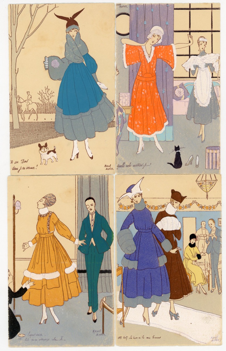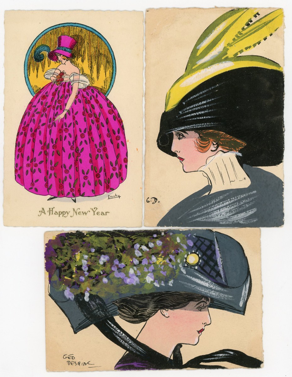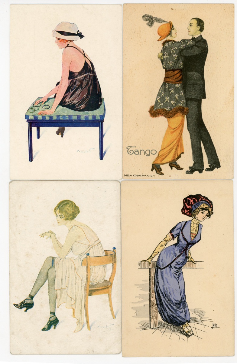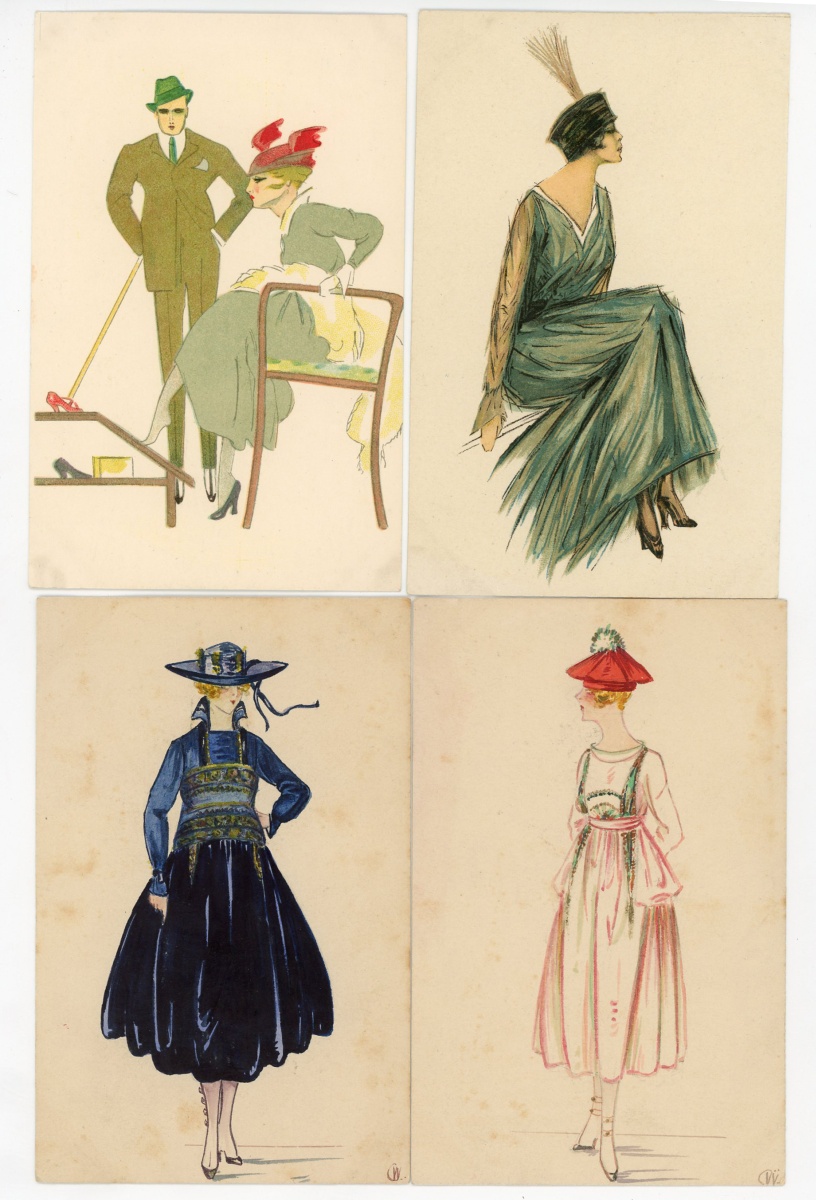 [ILLUSTRATEURS] Réunion de + de 695 cartes postales anciennes et cpsm, thème de la Femme et de la Mode, illustrateurs et illustrations, vers 1900-1930, toutes différentes, certaines peintes à la main, dont: Jack ABEILLÉ [3 cp] ; ALBERTINI [1 cp] ; ALICE [1 cp] ; " B. " [6 cp] ; Carlos BADT [6 cp] ; Gil BAER [2 cp] ; BALBO DEL VELLA [1 cp] ; BECK [1 cp] ; Alberto BERTIGLIA [6 cp] ; BIANCA [1 cp] ; BIANCHI [4 cp] ; BOB [1 cp] ; Philip BOILEAU [11 cp] ; S. BOMPARD [4 cp] ; Henri BOUTET? [1 cp] ; Wh. BRAUN [5 cp] ; BRIARÉE [3 cp] ; Ethel C. BRISLEY [13 cp] ; Adolfo BUSI [8 cp] ; Arthur BUTCHER [8 cp] ; G. CALDANA [4 cp] ; C. CALDERARA [2 cp] ; Elda CENNI [1 cp] ; CEOLOMBO [3 cp] ; CHIOSTRI [1 cp] ; P. Earl CHRISTY [3 cp] ; T. CORBELLA [44 cp] ; CREMIEU [1 cp] ; Géo DESAIN [2 cp] ; DOUKY [3 cp] ; DROG [7 cp] ; A. EICHENBERG [2 cp] ; Edy PARIS [15 cp] ; FERN [4 cp] ; FIDLER [4 cp] ; Harrison FISHER [4 cp] ; R. FRANZONI [9 cp] ; Léo FONTAN [3 cp] ; GIRIS [4 cp] ; GUNN [1 cp] ; J. HARDY [5 cp] ; HEROUARD [6 cp] ; Knut HANSEN [2 cp] ; R. Ford HARPERG [4 cp] ; Helena HORWITZ [1 cp] ; Martin KAVEL [1 cp] ; Mela KOEHLER [1 cp] ; KOISTER [2 cp] ; R. KRATKI [3 cp] ; JULIA [1 cp] ; de JUYNE [1 cp] ; François LAFON [6 cp série La Jupe Culotte] ; Georges LEONNEC [4 cp] ; Ralph LESTER [1 cp] ; " E. LESUR " [1 cp] ; " LN " [5 cp] ; Fabius LORENZI [1 cp] ; Law LUXON [1 cp] ; " G.M. " [11 cp] ; F. MADI [4 cp] ; Frederiks MANNING [3 cp] ; Henri MANUEL [5 cp] ; Achille MAUZAN [35 cp] ; ; G. MESCHINI [7 cp] ; MEDSILLE [1 cp] ; Suzanne MEUNIER [12 cp] ; MIARKO [2 cp] ; MILLE [6 cp] ; Maurice MILLIERE [5 cp] ; MIKI [31 cp] ; A. MOLYNK [1 cp] ; MAGGY MONIER [12 cp] ; M. MONTEDORO [1 cp] ; MORIN [1 cp] ; Marjorie MOSTYN [2 cp] ; Georges MOUTON [7 cp] ; Charles NAILLOD [27 cp] ; Jacques NAM [2 cp] ; Giovanni NANNI [13 cp] ; A.A. NASH [1 cp] ; Max NINON [1 cp] ; E. OCCHIPINTI [2 cp] ; V. ORLANDI [1 cp] ; Sophie PADNEY [4 cp] ; S. PAVY [4 cp] ; PENY [2 cp] ; PERO [3 cp] ; PLUM [17 cp] ; PINOCHI [8 cp] ; PREJELAN [1 cp] ; N. RAME [1 cp] ; RAPPINI [6 cp] ; Alexandre de RIQUER [4 cp] ; E. ROUSSELET [1 cp] ; L. ROSA [1 cp] ; ROBERTY [22 cp] ; SAN MARCO [4 cp] ; SANTINO [6 cp] ; Jean TAM [4 cp] ; Edouard TOURAINE [4 cp] ; Clarence F. UNDERWOOD [7 cp] ; VAL [1 cp] ; VALERIS [2 cp] ; F. VECCHI [1 cp] ; VILLA [2 cp] ; P. VILLANI [4 cp] ; A. WUYTS [2 cp] ; WILL [1 cp] ; WILLY [4 cp] ; etc.