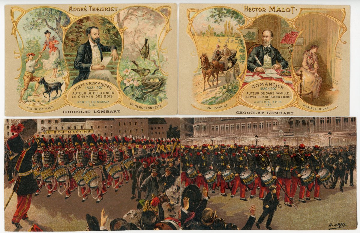 Joint: 3 chromos (Chocolat Poulain ; Corset le Furet) ; 5 cp Walt Disney.