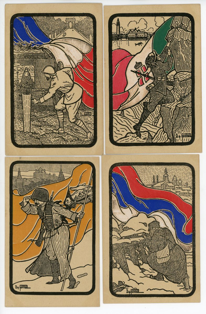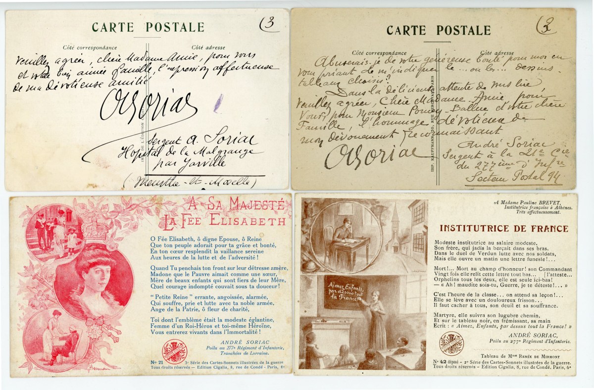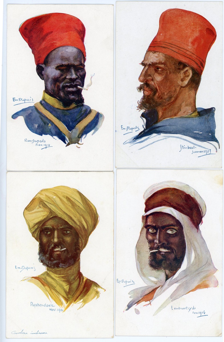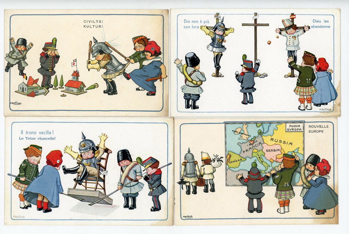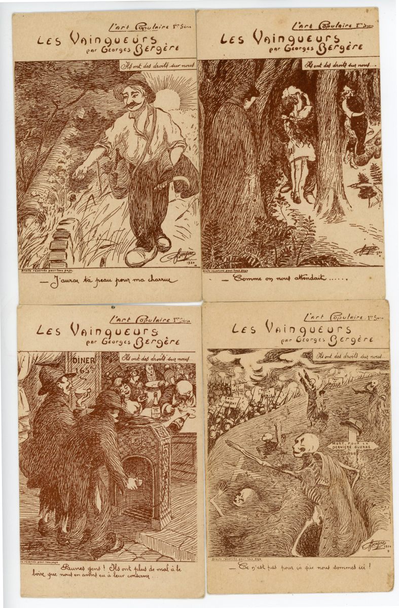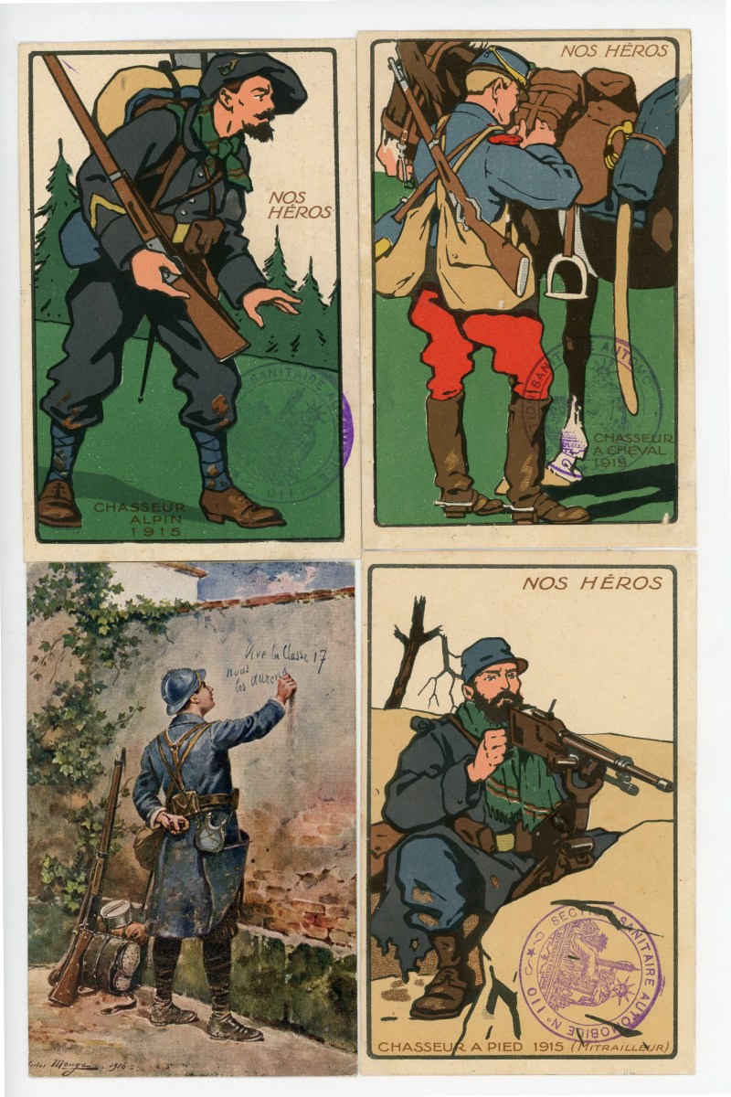 [MILITARIA] env. 395 cartes postales anciennes et qqs cpsm, Militaria et Guerre 14-18: satiriques et patriotiques, illustrateurs et illustrations dont: Em Dupuis [49 cp], André Soriac [14 cp dont 2 écrites et signées par Soriac], Edy [10 cp], A. Bertiglia [9 cp], F. Chamouin [8 cp], B. de Guinbald [8 cp], Hemjic [6 cp], Arthur Foache [4 cp], C. Maréchaux [4 cp], Bergère [4 cp], Willette, Manfredini, Falké, Moriss, Paracini [4 cp], etc.