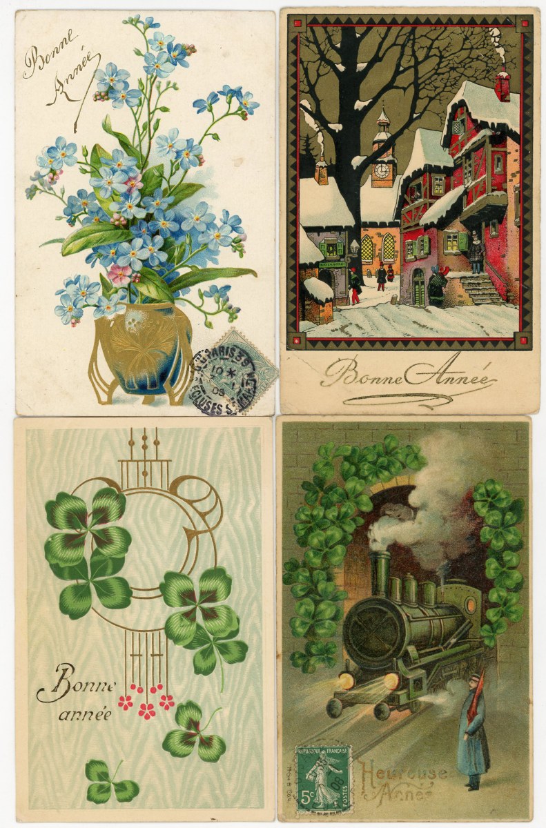 [FANTAISIES] Env. 1450 cpa et cpsm, divers thèmes. Dont: Bonne Année [335 cp], Anniversaire [50 cp], 1er Avril [185 cp], Joyeux Pâques [160 cp], Joyeux Noël [80 cp], Souhaits Sincères, Bons baisers, Souvenirs, Bonne fête [105 cp] ; Chiens, Chats, Lapins, Cochons, Enfants, Viennoises, Style Art Nouveau, Illustrations et illustrateurs dont Arthur THIELE, Fleurs, Gaufrées, Glacées, Humour, etc.