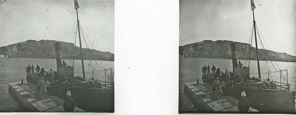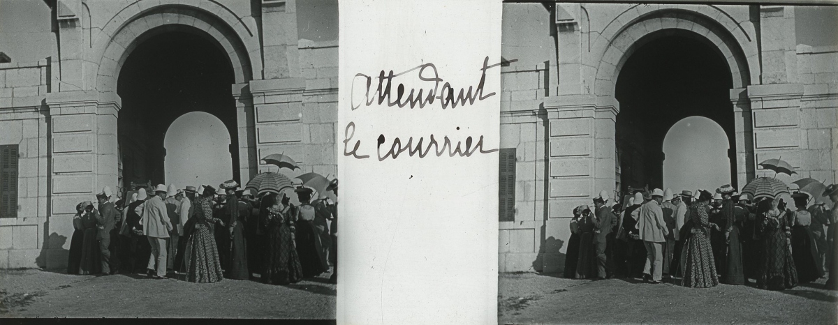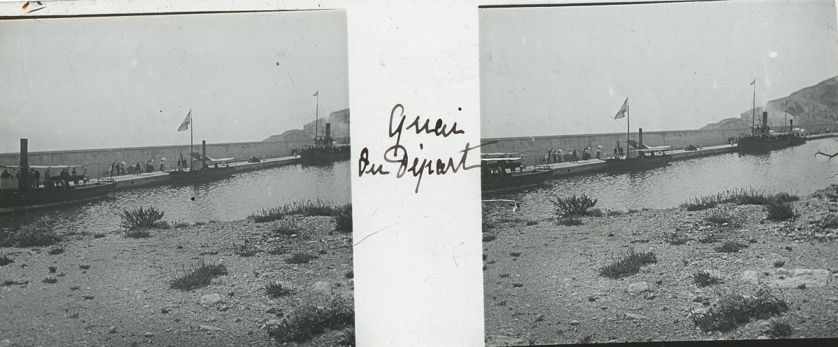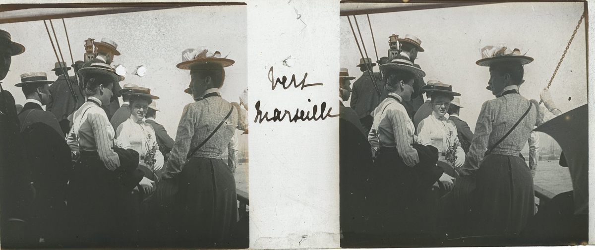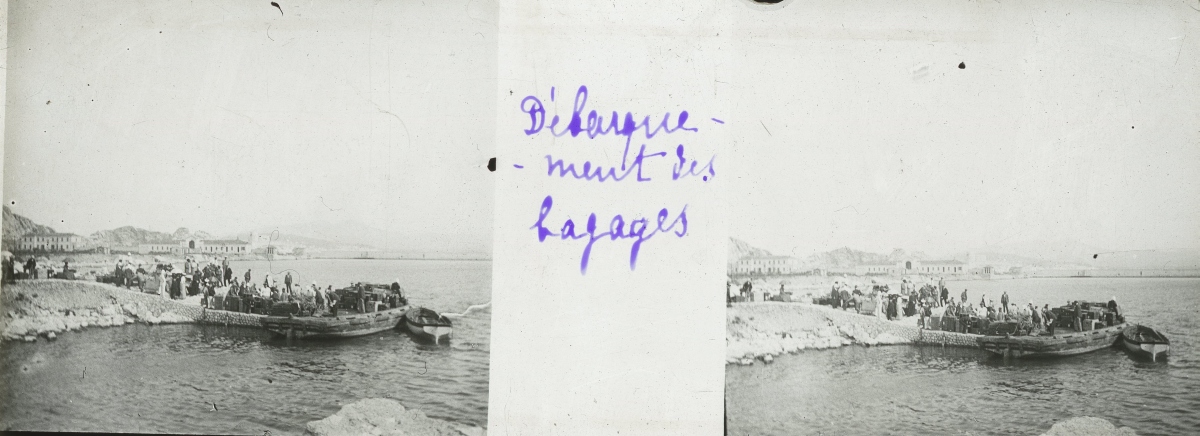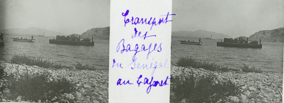 [Frioul - Peste] 51 plaques de verre stéréoscopiques positives, 12 x 9 cm, en majorité légendées, prises par Henri COUTROT, en septembre 1901. Rares vues inédites de la mise en quarantaine des passagers du paquebot de croisière " Le Sénégal " sur l'île de Frioul en septembre 1901: à bord du " Sénégal ", le paquebot " Ernest-Symons ", port du Frioul, lazaret " hôpital Caroline ", etc.