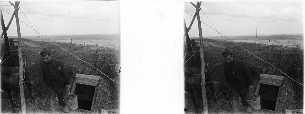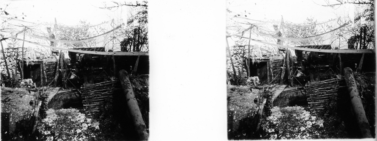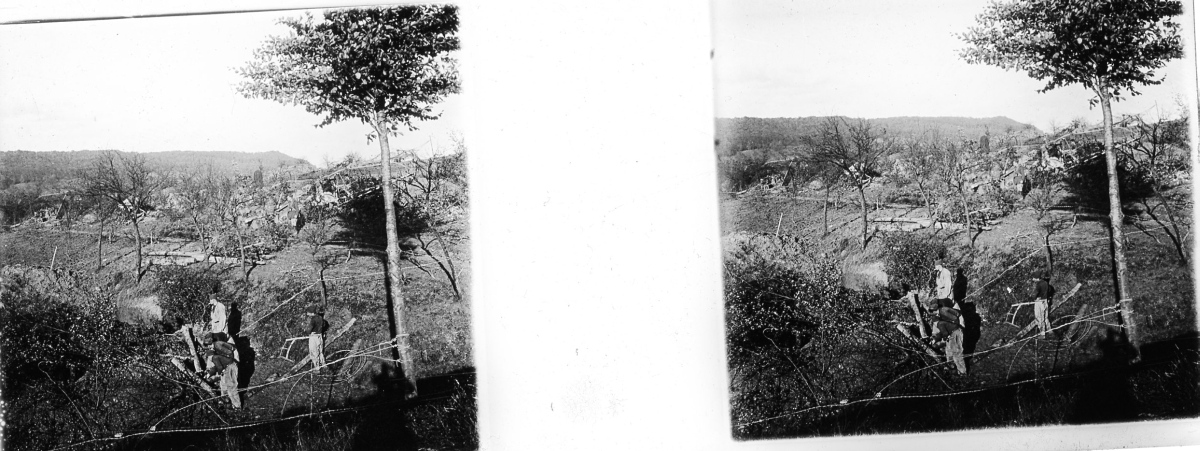 [Guerre 1939-1940] 76 plaques de verre stéréoscopiques prises par Jacques COUTROT, 38 vues positives et 38 négatives, 12 x 9 cm. Vues prises sur la ligne du front dans l'Est de la France en 1940.