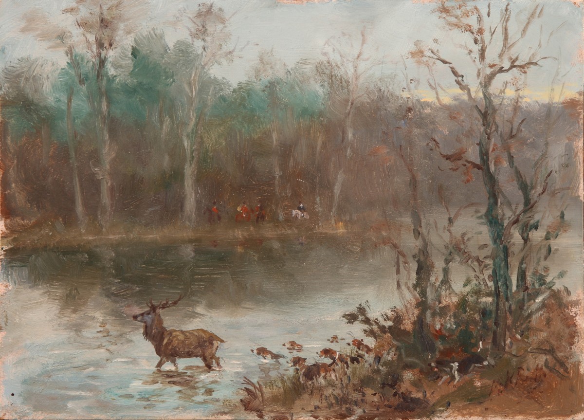 Nous remercions Monsieur Hervé Tremblot de la Croix, auteur d'ouvrages de référence sur la vénerie et vice-président du musée de la vènerie de Senlis, qui nous a aidé à identifier cette scène.